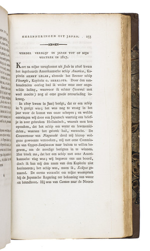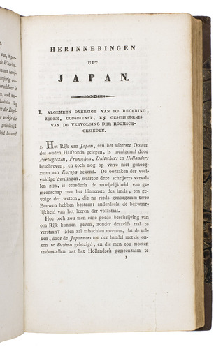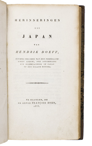 Interesting account and very important source about the Japanese customs, traditions and religious aspects written by Hendrik Doeff (1777-1835), who was the "opperhoofd" or head of the Dutch trading post on Deshima during the turbulent years 1799-1817. While Holland was occupied by the French, the Dutch East-Indies were under British administration - from 1811-1816 under Governor Raffles - the Dutchman Hendrik Doeff resettled on Deshima where he maintained the Dutch ruling. On February 16th, 1819 he set sail back to the Netherlands but was shipwrecked on the 9th of april. The whole crew was saved but Doeff lost all his papers, notes and other interesting materials which he had collected during his 19 years stay in Japan. In the foreword of his book, Doeff explains that the shipwreck and the loss of his papers have prevented him from writing a more extensive account.
