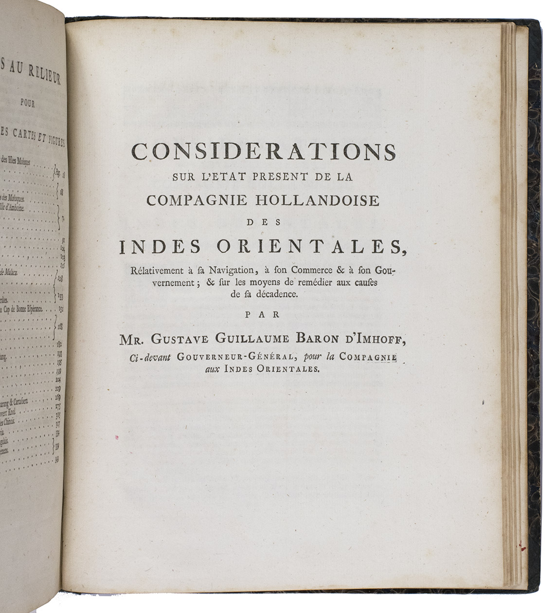 Including: IMHOFF, G.W. van. Considerations sur l'etat present de la compagnie hollandoise des Indes Orientales.