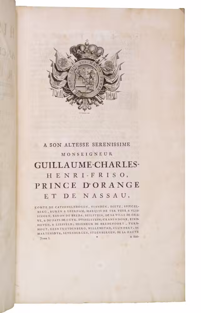 16 volumes: (ad 1: 17 parts in 10 volumes, ad 2: 2 parts in 1 volume, ad 3: 4 parts in 3 volumes, ad 4: 2 parts in 2 volumes). Large folio. With an engraved title-page in the first volumes of ads 1-3, an engraved full-page plate in volume 1 of ad 1 and some (folding) tables in the volumes of ad 4. All vollumes contian woodcut or engraved vignettes on the title-pages, woodcut decorated initials, and woodcut head- and tailpieces. The main title-pages for the different parts are printed in red and black, with occasionally some small woodcut illustrations in the text of most volumes. Contemporary uniform blind-tooled vellum, sewn on 9 supports with 9 corresponding raised bands on the spine, with the manuscript title and volume number in the second and third compartment, red and blue sprinkled edges. A detailed list of contents is available upon request.