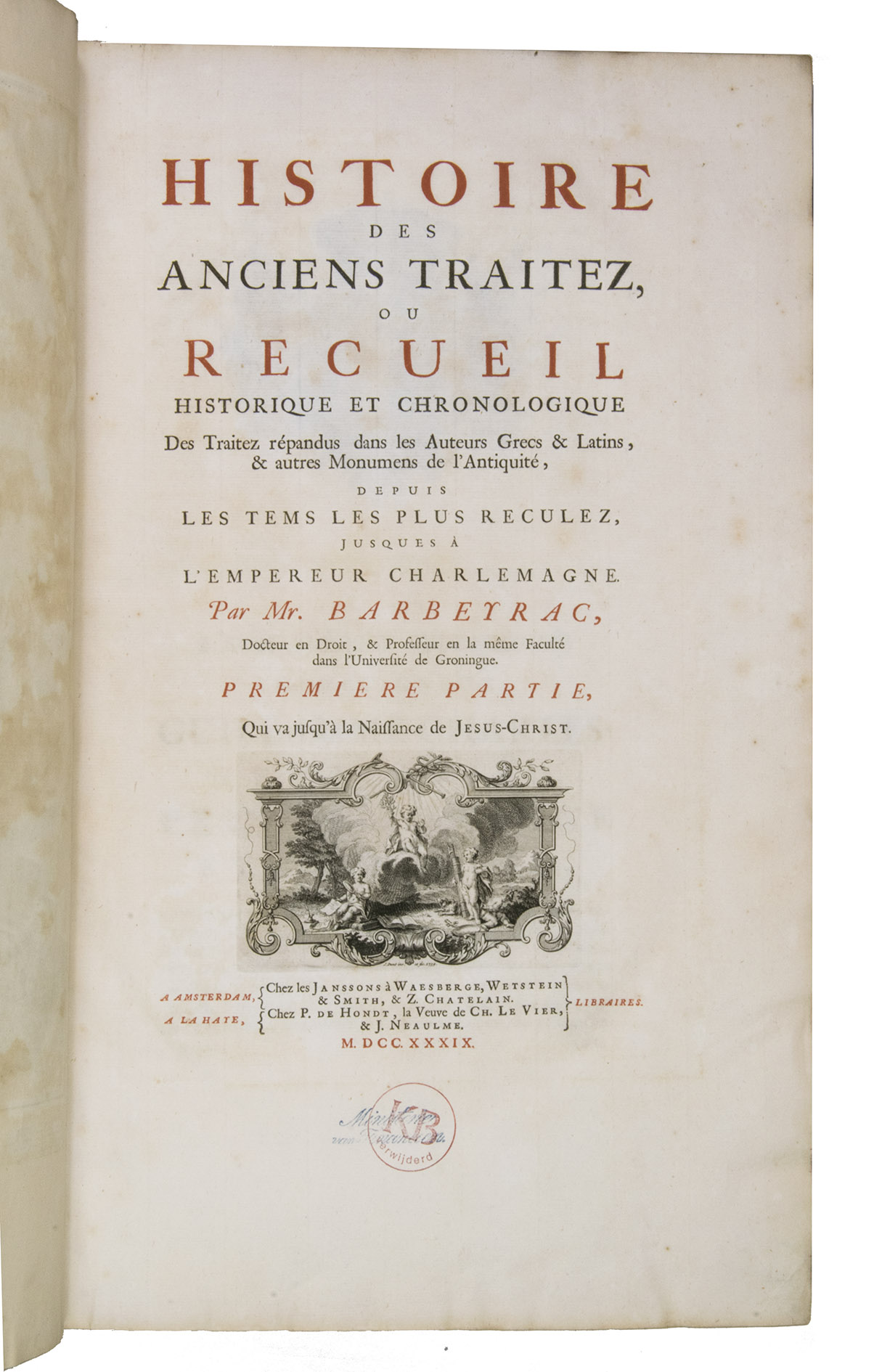 (2) BARBEYRAC, Jean (compiler). Histoire des anciens traitez ...