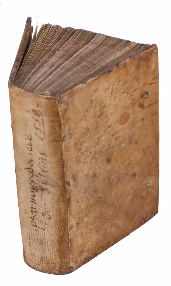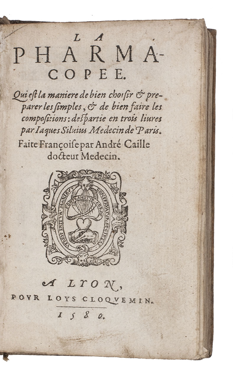 Rare second French edition of a pharmacopoeia first published in Latin and reaching more-or-less its completed form with the Latin edition published at Lyon in 1548, but with predecessors going back to 1541. The present first French translation was first published at Lyons in 1574. The book was compiled by the Paris Galenist physician and professor of anatomy, Jacques Dubois or Sylvius (1478?-1555), teacher of Vesalius, and translated by the Lyons physician André Caille (1515-1580). The three "libri" cover collecting simples, preparing simples and preparing compound medicines. The 1548 edition introduced the title Pharmacopoeae, which many later pharmacopoeia followed.