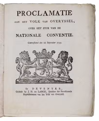 Proclamatie aan het volk van Overyssel, over het stuk van de Nationale Conventie. Gearresteerd den 21 September 1795.
