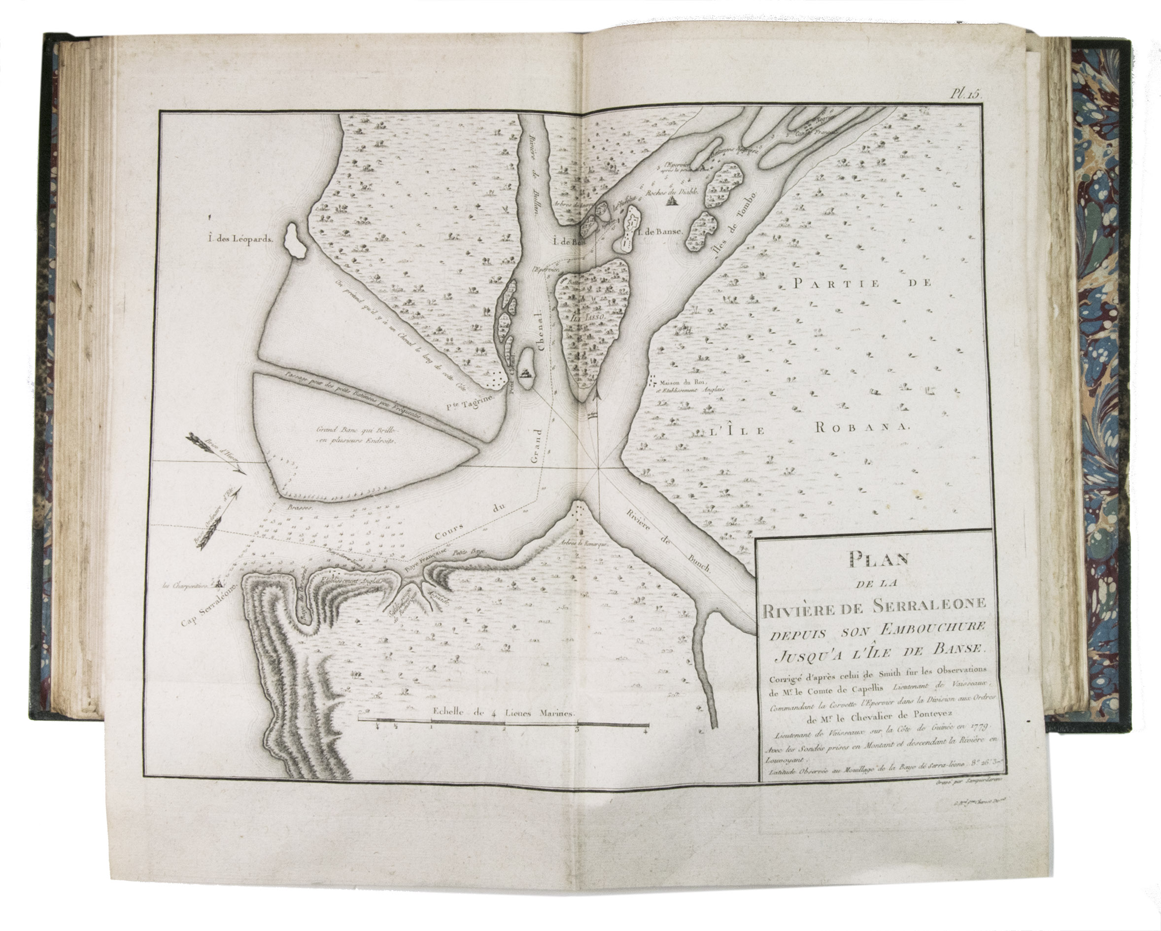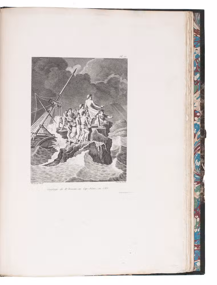 Paris, Henri Agasse, 1802. 2 volumes (1 text and 1 atlas). 4to. Atlas with an engraved portrait of Léonard Durand, 16 double-page engraved maps (mostly folding) and 27 engraved plates. Modern dark green half morocco, gold-tooled spine, upper edges gilt. [4], XXXII, 420; VIII, [4], 68 [1 blank] pp.