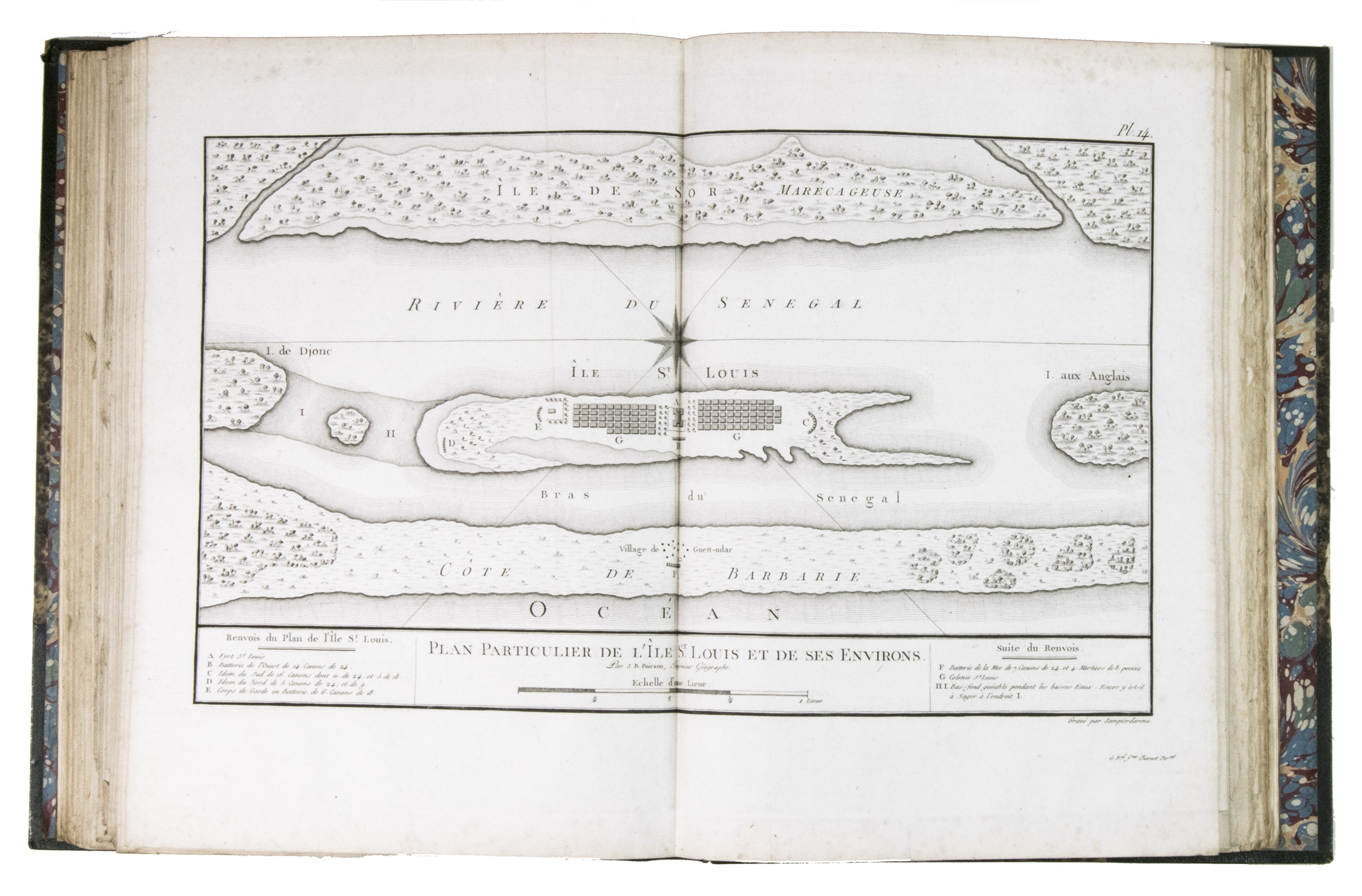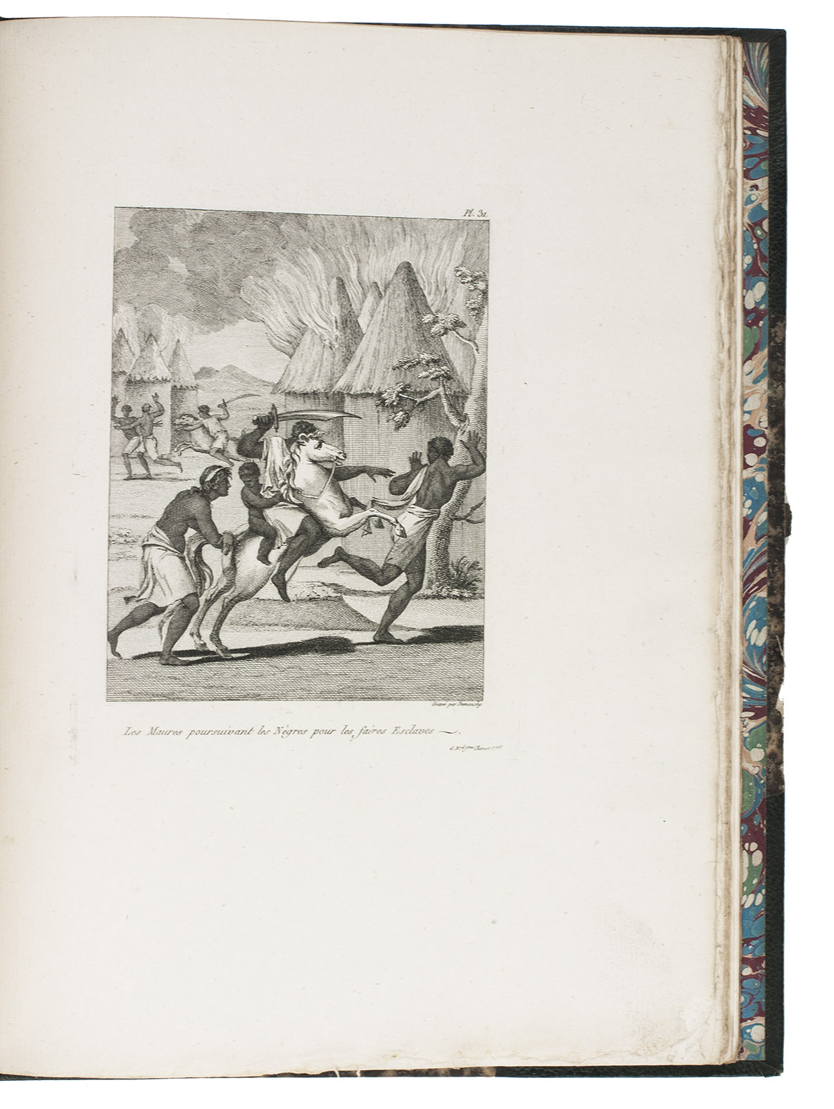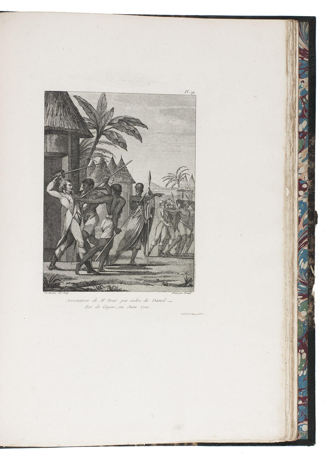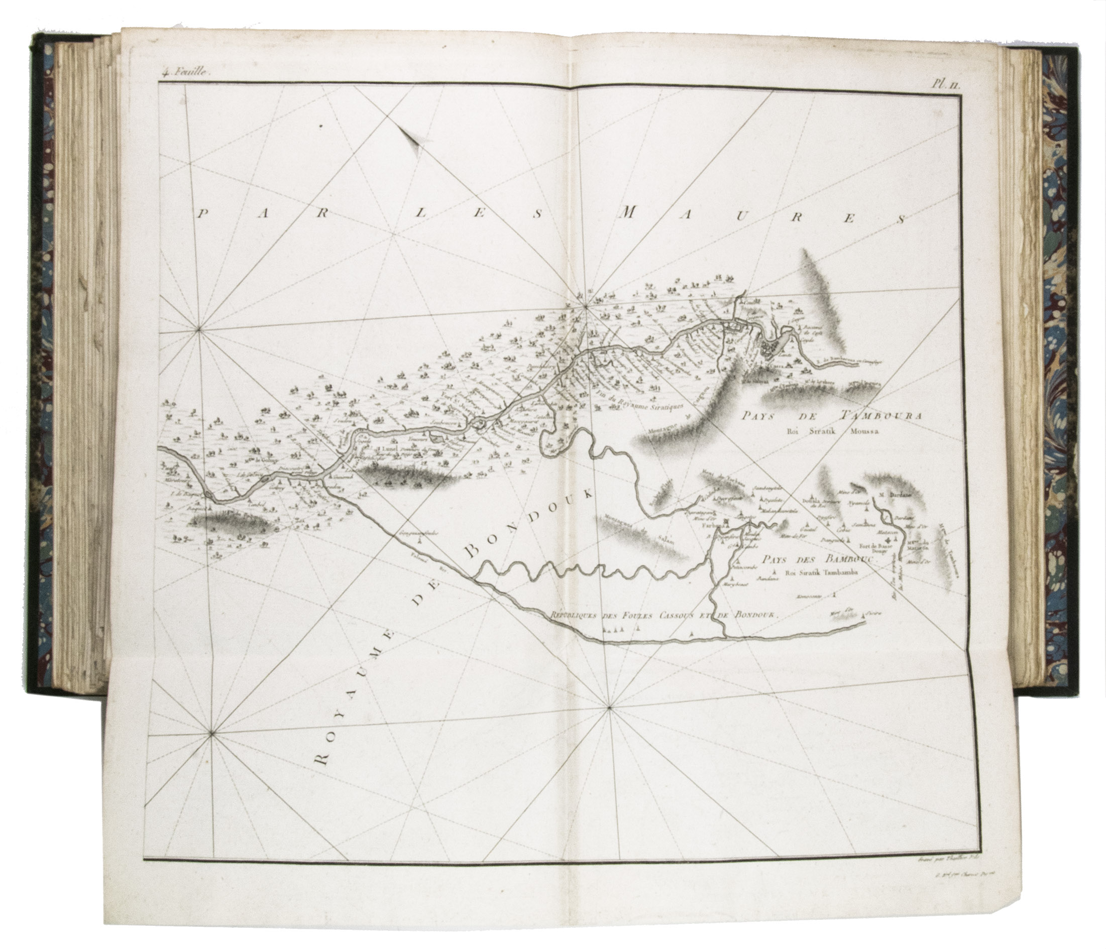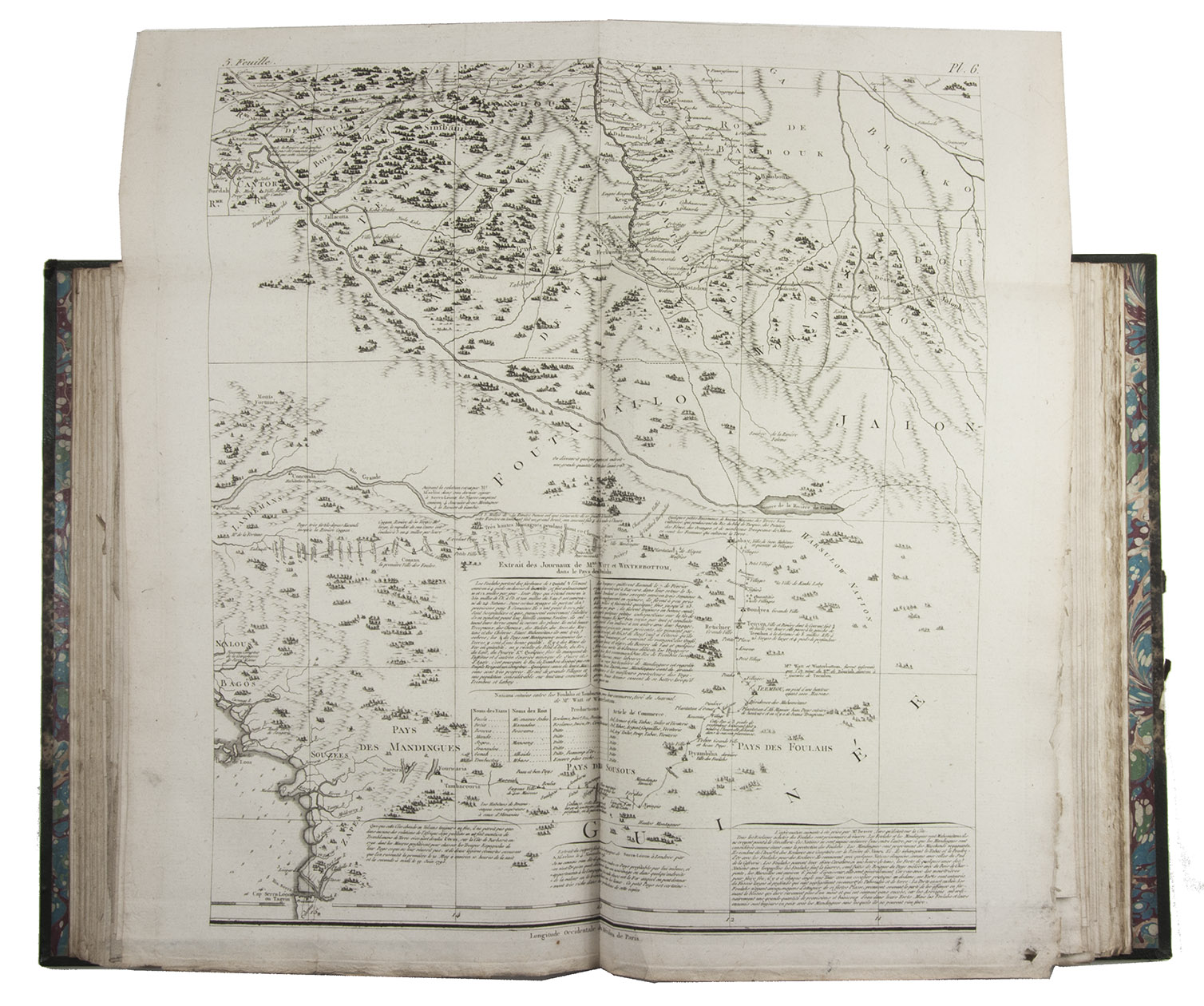 Attractive copy of the first edition, in the original French, of an account of the 15-month commercial expedition to Senegal and Sierra-Leone, initiated by the French African Company and led by Jean-Baptiste-Léonard Durand (1742-1812). Durand gives a detailed description of the native inhabitants and their customs, the geography, flora and fauna, also giving valuable information on European trade and commerce in the area, the relationship between the Europeans and African tribes, and of the things he accomplished and agreed upon with the local authorities. The atlas volume includes three copies of commercial treaties drawn up in French and Arabic; many very detailed maps of the coast of Senegal and of the settlements along the river Senegal; and illustrations with scenes of daily life and domestic vegetation and animals.