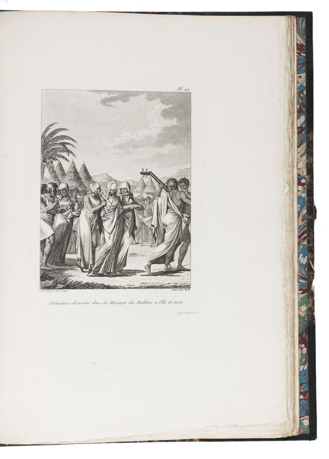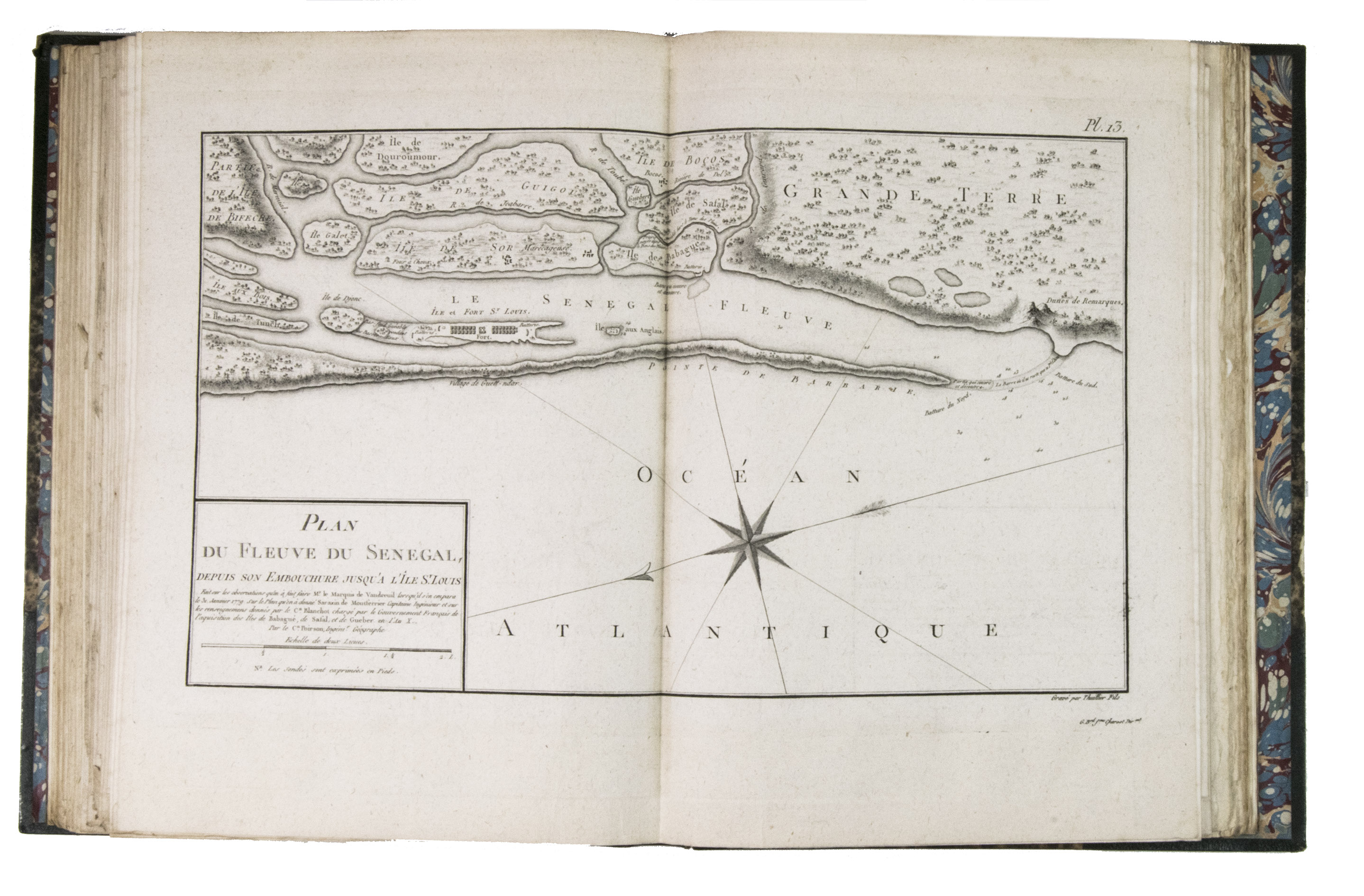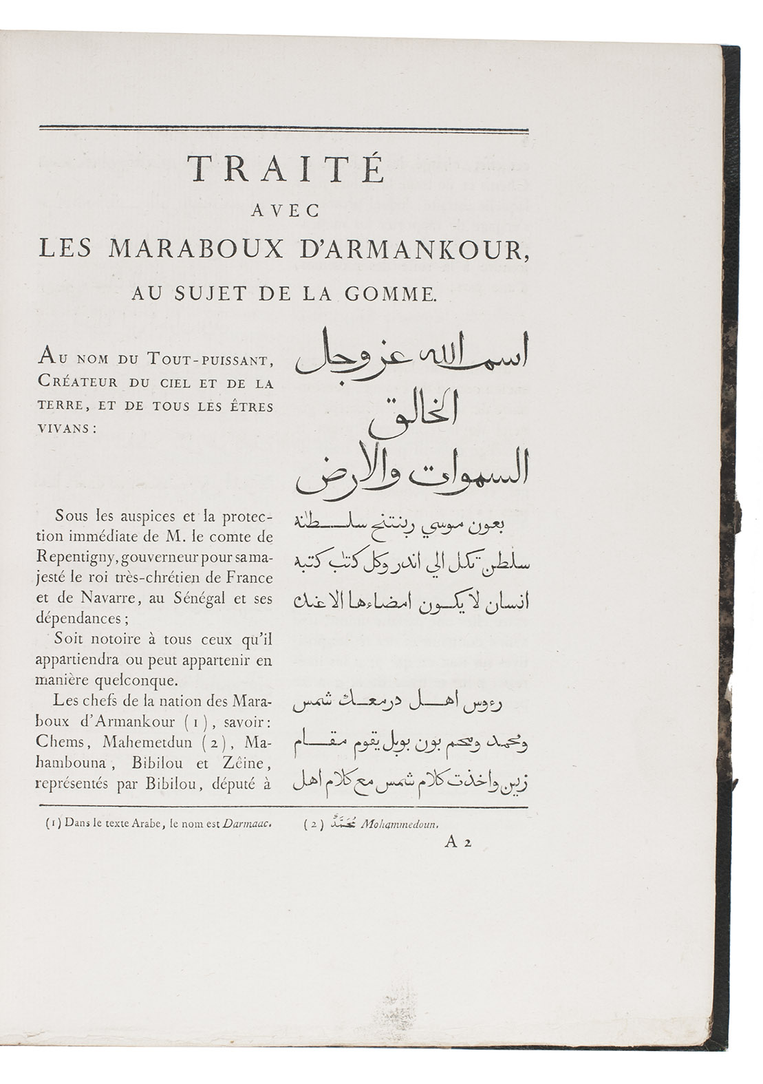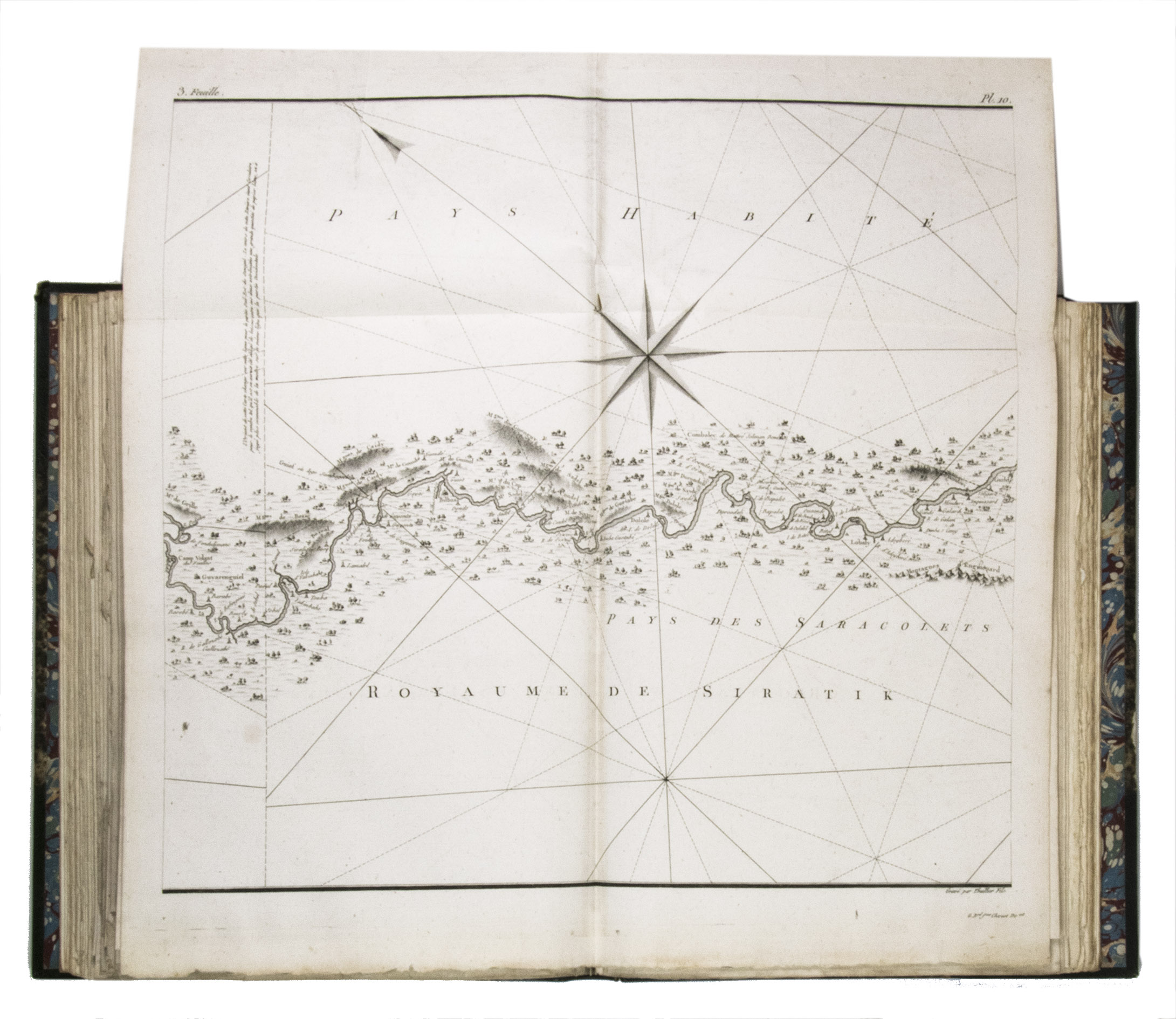 Attractive copy of the first edition, in the original French, of an account of the 15-month commercial expedition to Senegal and Sierra-Leone, initiated by the French African Company and led by Jean-Baptiste-Léonard Durand (1742-1812). Durand gives a detailed description of the native inhabitants and their customs, the geography, flora and fauna, also giving valuable information on European trade and commerce in the area, the relationship between the Europeans and African tribes, and of the things he accomplished and agreed upon with the local authorities. The atlas volume includes three copies of commercial treaties drawn up in French and Arabic; many very detailed maps of the coast of Senegal and of the settlements along the river Senegal; and illustrations with scenes of daily life and domestic vegetation and animals.