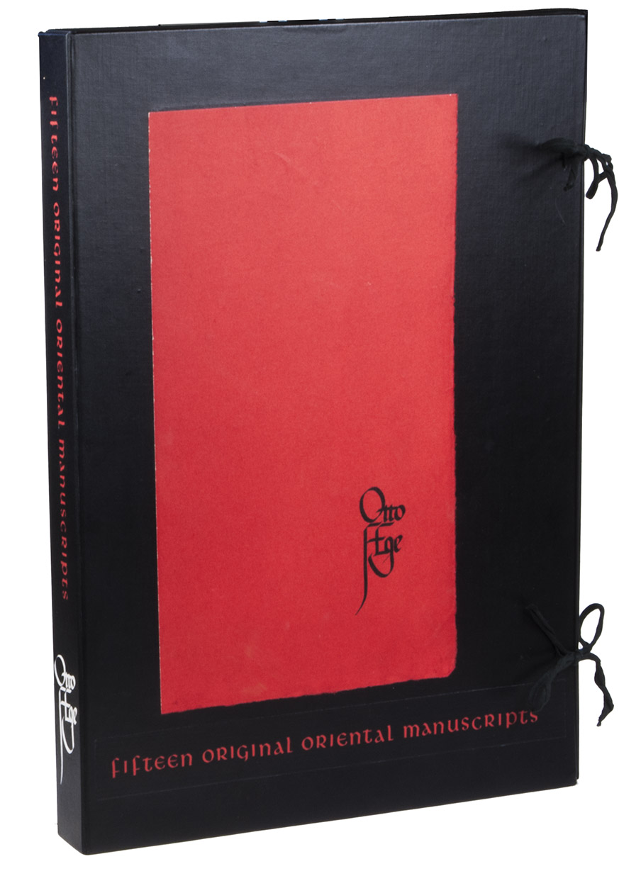 Copy number 33 (from a limited edition of 40) of Eges famous portfolio containing a collection of 15 leaves from oriental manuscripts, written between the 12th and 18th centuries. The press run had to be limited because some of the manuscripts probably had no more than about 40 leaves.