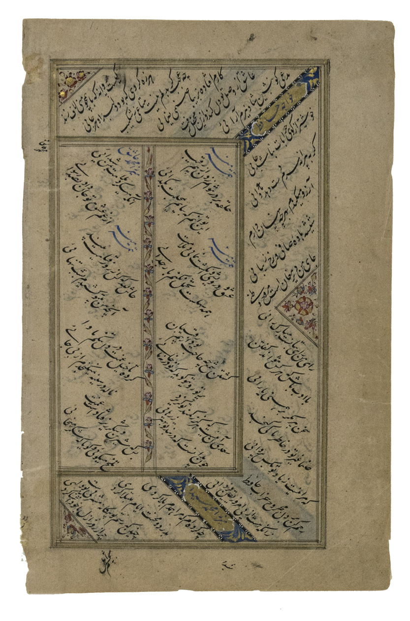 The portfolio, the two copies of the contents leaf and the 15 passe-partouts with the manuscript leaves are in very good condition. A detailed condition report of the 15 manuscript leaves included in the detailed list of contents, available upon request. WorldCat 15372178 (7 copies), 78768040 (2 copies), 1322443218 (1 copy).
