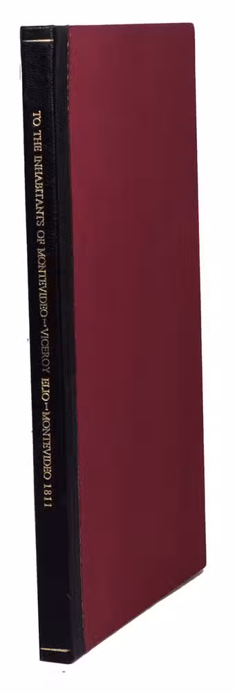Second known copy of one of the earliest Montevideo imprints, published by Francisco Javier de Elío (1767-1822), the last viceroy of Rio de la Plata, urging the inhabitants of the town to remain loyal to Spain, which they did until 1814 when they surrendered to the revolutionary army of the Provinces. Montevideo, capital of the Spanish colonial predecessor of modern Uruguay, was at the time a small town of about 8000 souls only. General Auchmuty established the first Montevideo printing office during the British occupation, in the winter of 1807, but it was removed in the same year to Buenos Aires. In 1810, the Infanta Carlotta Joaquina sent a printing press from Buenos Aires, allowing the city to set up its first permanent printing office, whose first imprints appeared later that year. It was an official city press, and when named in imprints (including other proclamations by the Viceroy), it was usually simply called "la imprenta de la ciudad de Montevideo". Since it was the only printing office in Montevideo at the time, it almost certainly produced the present publication. The only other copy we have located is at the John Carter Brown Library.