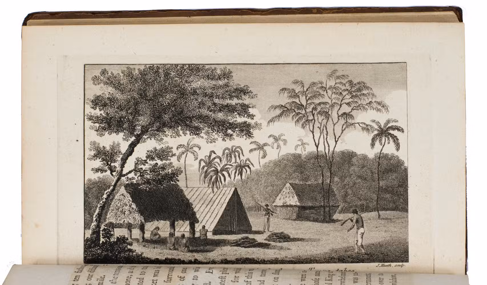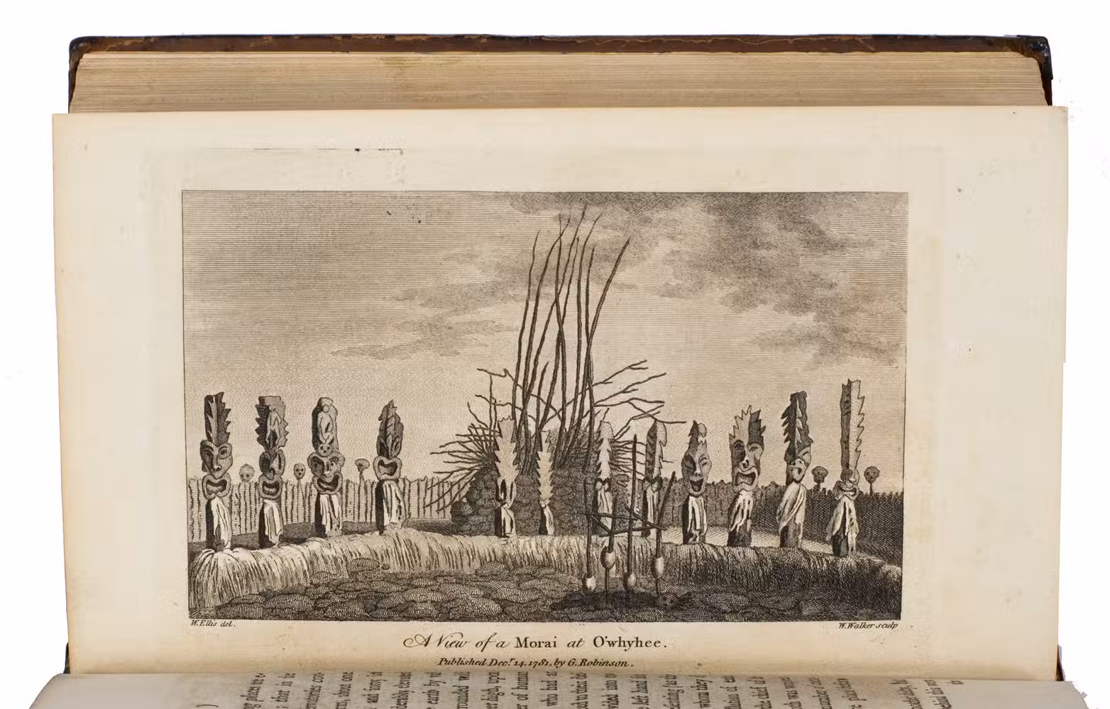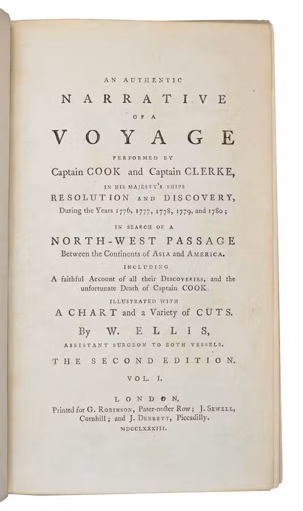 Second edition of William Ellis's voyage as assistant surgeon on Captain Cook (1728-1779) and Captain Clerke's third voyage. On this third voyage the main goals were to investigate the coasts of the North Pacific. The ship Resolution sailed from Plymouth in July 1776, followed by the Discovery in August 1776 and met again at the Cape of Good Hope. From there they left together on the 30th November of the same year, sailing past the Prince Edward Islands to Van Diemen's Land (now Tasmania). From Tasmania they sailed towards New Zealand and continued to travel northwards, discovering the Raratonga and the Cook Islands. They landed at Tahiti, where the whole crew rested for four months in preparation for the voyage north.