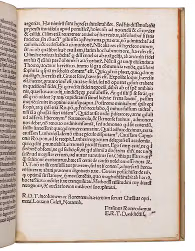 The boards are somewhat warped. The work has been bound with 25 blank leaves. Otherwise in good condition. Adams E 871; Allen, Opus epistolarum Erasmi IV, 1033; Bezzel 28; BM STC German, p. 276; Erasmus Online 1957; Proctor 10920; USTC 635546 (5 copies); Vander Haeghen I, 93; VD16 E 1887; not in De Reuck.