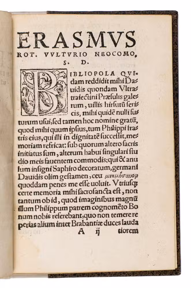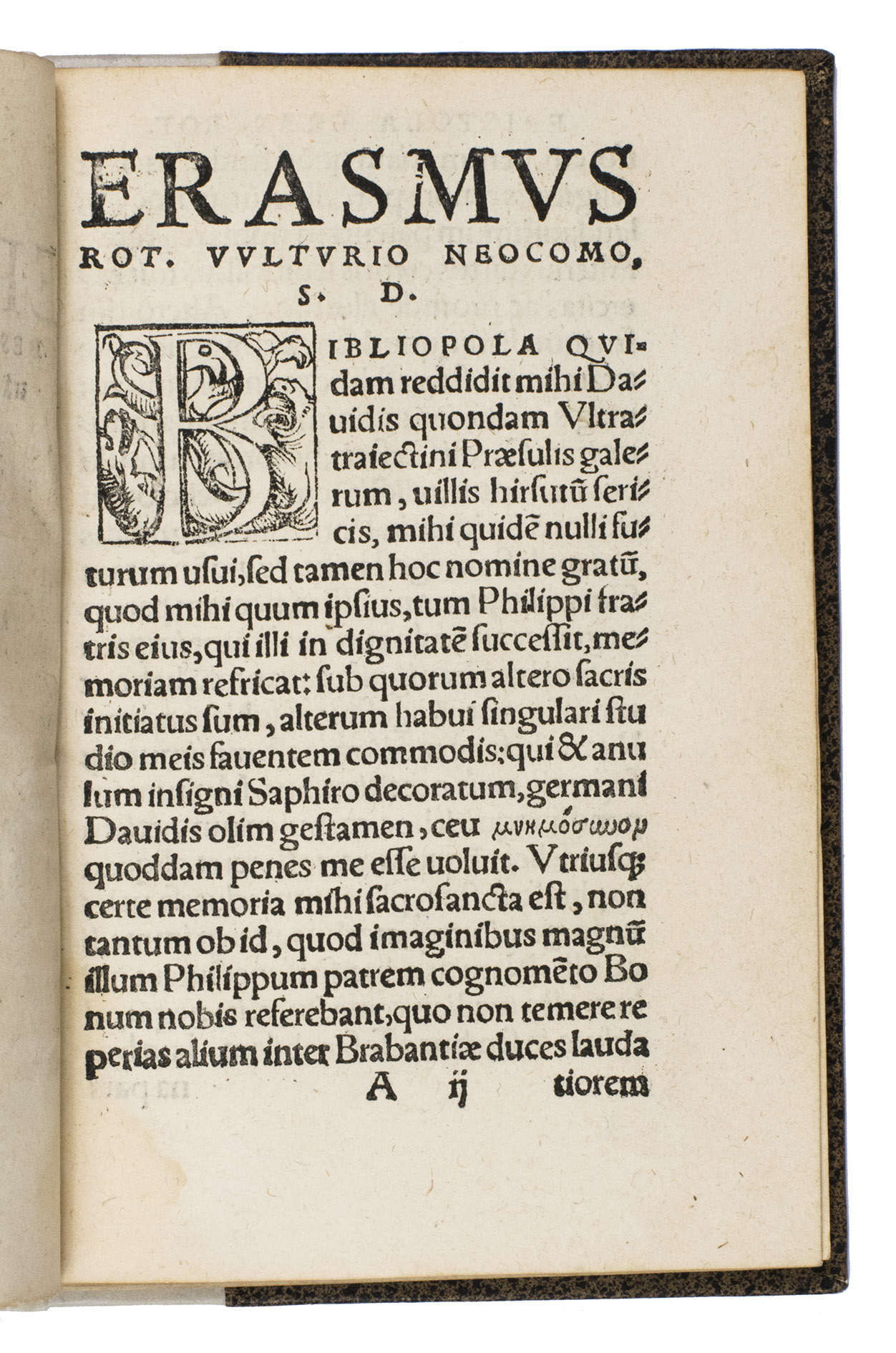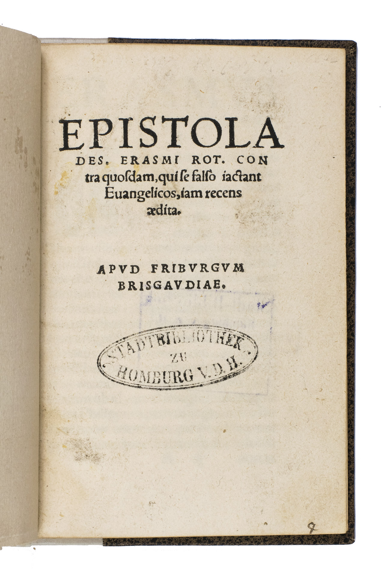 First edition of a polemical work by Erasmus, written at a pivotal moment in the escalation of tensions during the Reformation. Composed in Freiburg and dated 4 November 1529, this extensive letter to Gerardus Geldenhauer (1482-1542) is Erasmuss direct and indignant response to the unauthorised use of his Apologia ad monachos Hispanos in Geldenhauers own Epistolae aliquot de re evangelica et haereticorum poenis (Strasbourg, September 1529). By selectively quoting Erasmus, Geldenhauer sought to align him with the Lutheran cause, a move that Erasmus strongly rejected.