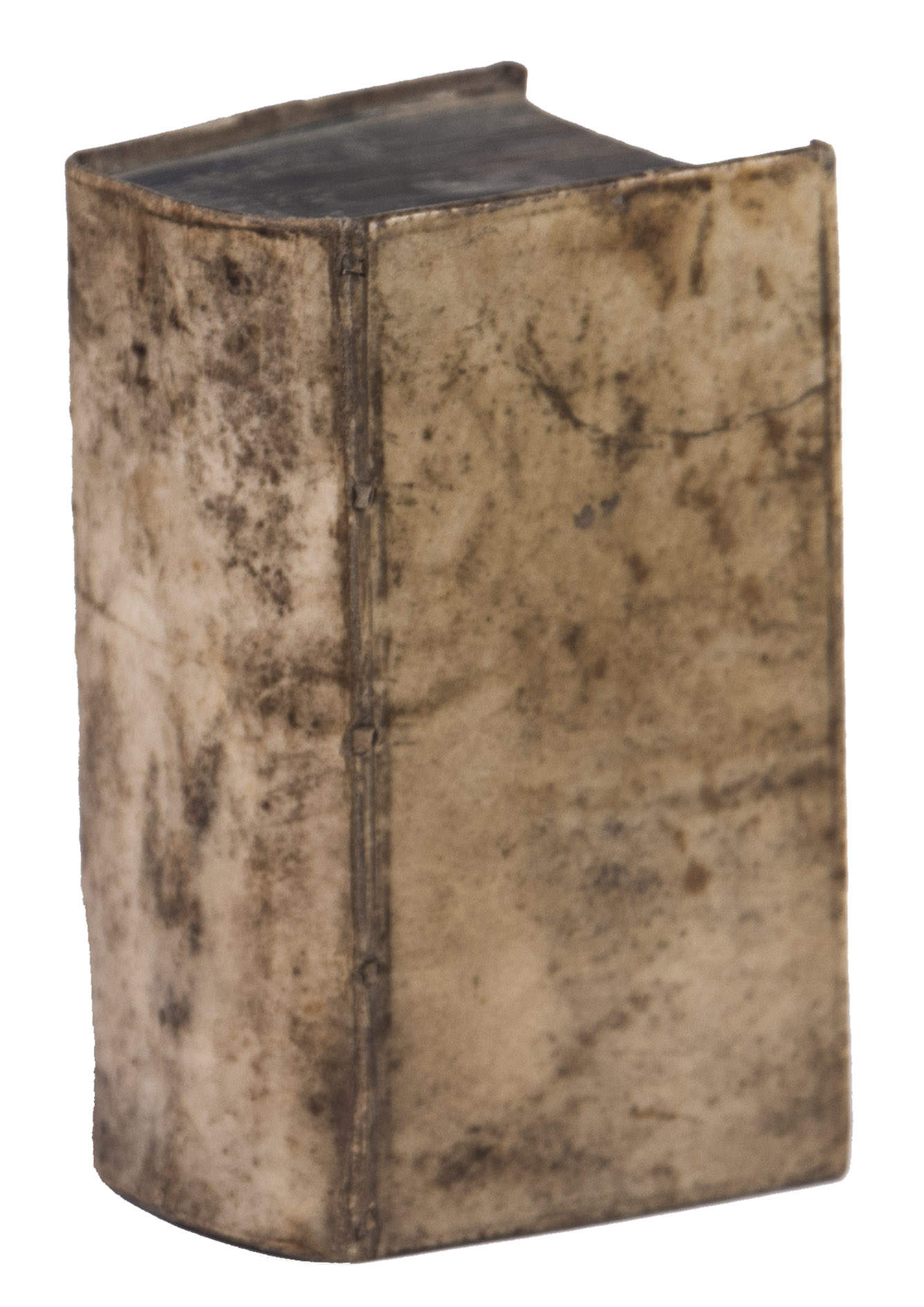 Leiden, Joannes Maire, 1642. 4 works in 1 volume. 12mo. With Maire's woodcut devices on all four title pages, several woodcut decorated initials throughout. Contemporary overlapping vellum, sewn on 3 supports laced through the joints, blue edges. 264; 330 [2 blank]; 144; [1], [1 blank], [6], [4 blank], 176, [2 blank] pp.