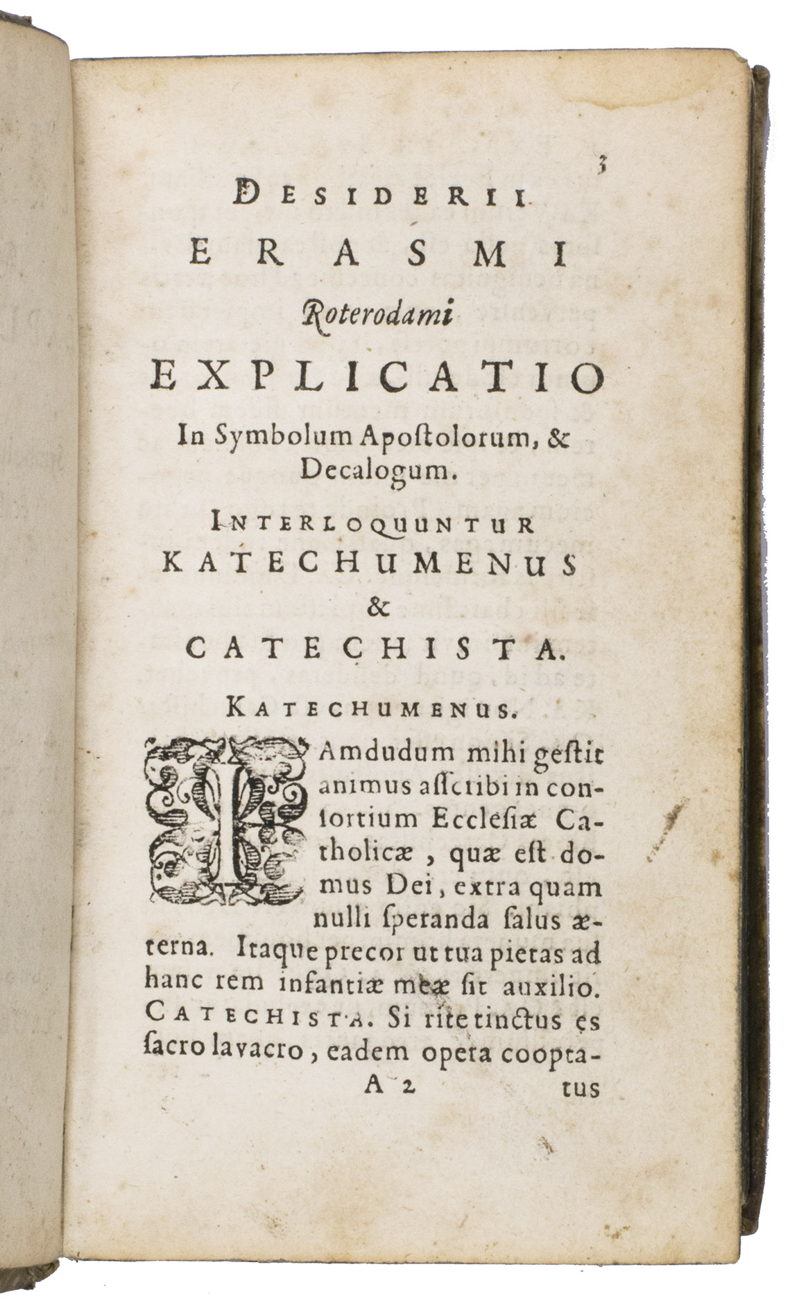 Ad 2: A finely printed Latin edition of one of Erasmus' most celebrated devotional treatises "The Handbook of the Christian Soldier". The work serves as a practical guide to inner piety and spiritual discipline, advocating a faith grounded not in ritual or external observance but in the renewal of the heart and the imitation of Christ. It is preceded by a letter of Erasmus to Paulus Volsius, dated Basel, 15 August 1518.