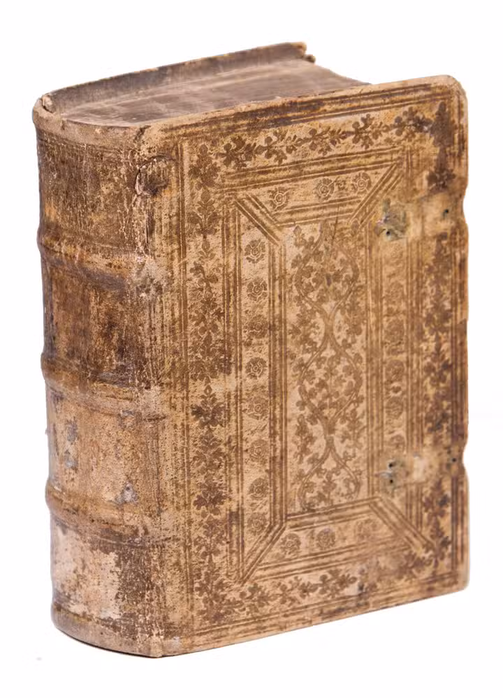 (Colophon:) Basel, Johann Froben, April 1525. 3 works in 1 volume. 8vo. With Froben's woodcut device on the title page and final leaf of each work. Contemporary elaborately blind-tooled pigskin over wooden boards, with the manuscript title of ad 1 on the fore-edge, remnants of fastenings. [172]; [212]; [40] ll.