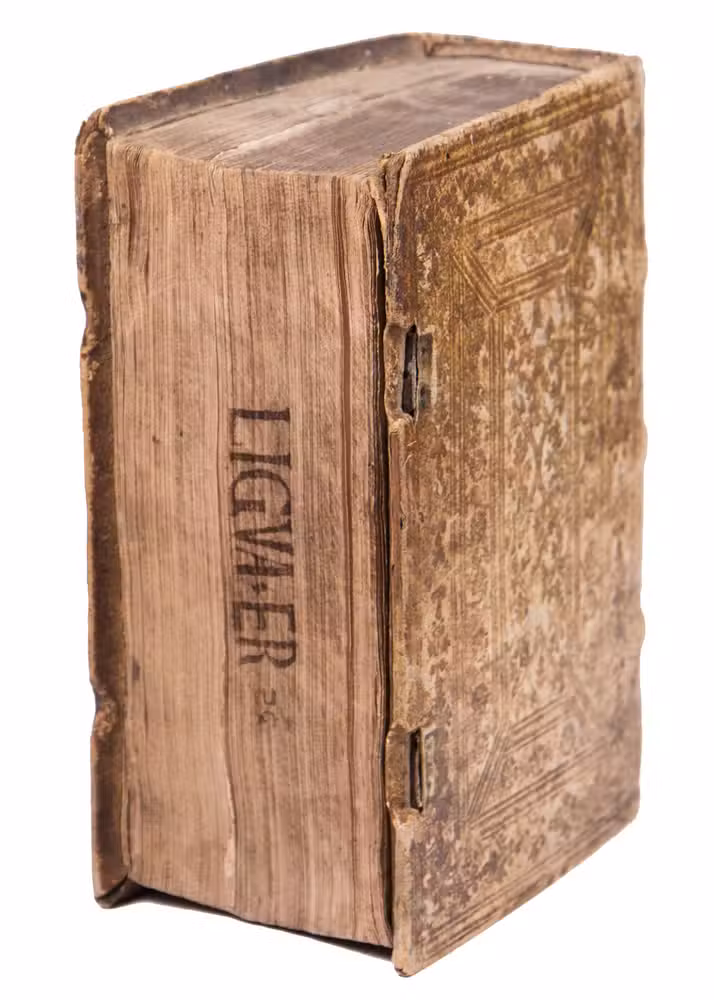 Ads 1 and 2 with manuscript annotations in the margins and some of the text underlined. The title page and last leaf of ad 1 are nearly detached and with faded/erased stamps on the title page. The binding shows signs of wear, some small pieces of leather missing on the back board revealing the wood below, remnants of catch- and anchor plates, small strips of manuscript waste visible in the gutters of the blank flyleaves, some staining and browning in places. Otherwise in good condition. Ad 1: USTC 673008; Vander Haeghen I, 117; VD 16 E3156; not in Adams; BM STC German; Ad 2: Adams E 518; BM STC German p. 279; Huizinga p. 160; USTC 621133; Vander Haeghen I, 110; VD 16 E 2182; Ad 3: Adams C 1552; BM STC German p. 455; USTC 667916; Vander Haeghen II, 35.