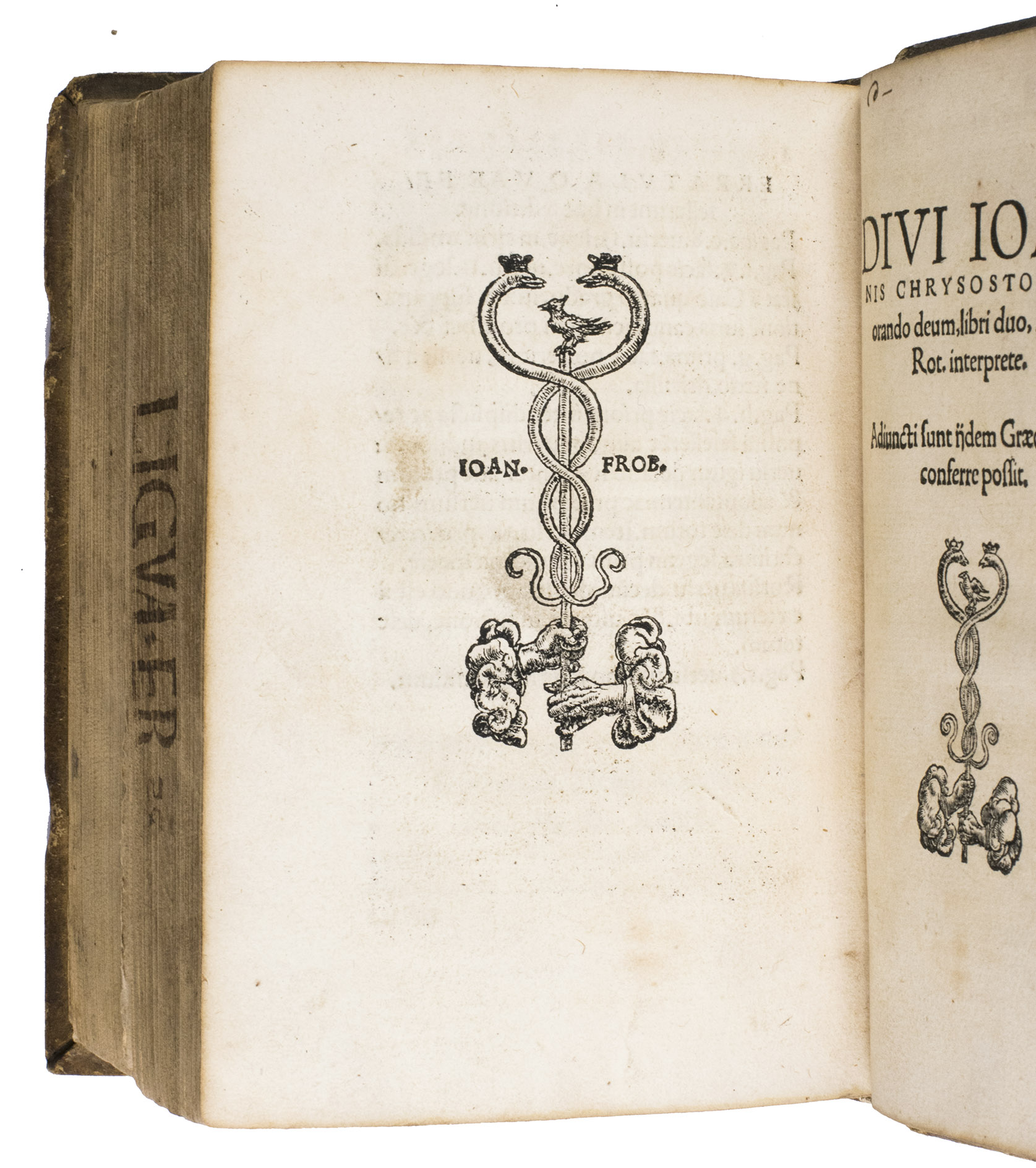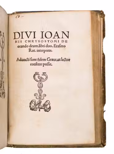 (3) CHRYSOSTOM, John and Desiderius ERASMUS (translator). Divi Ioannis Chrysostomi de orando deum, libri duo. Erasmo Rot. interprete. Adiuncti sunt ijdem Graece, ut lector conferre possit.