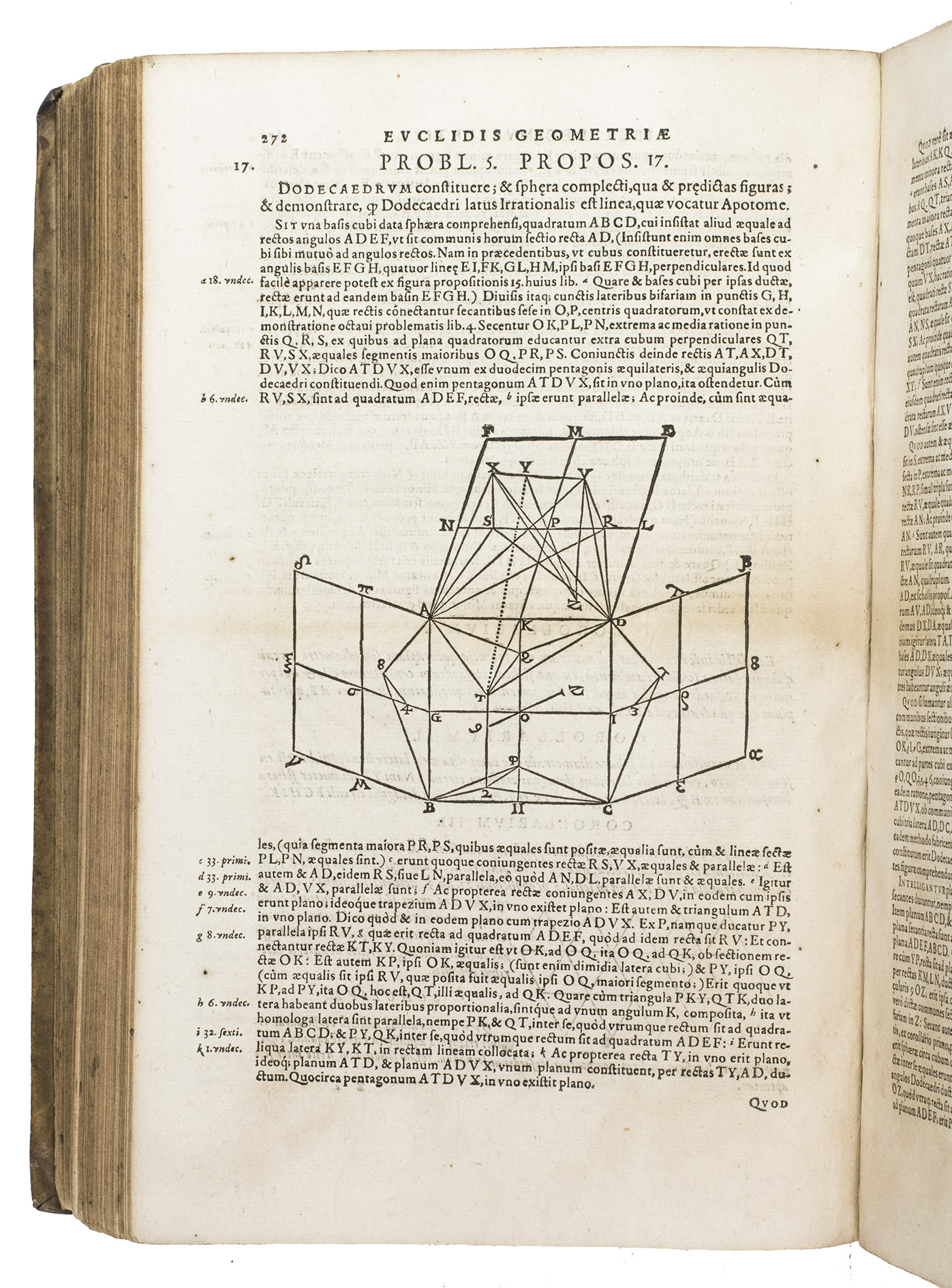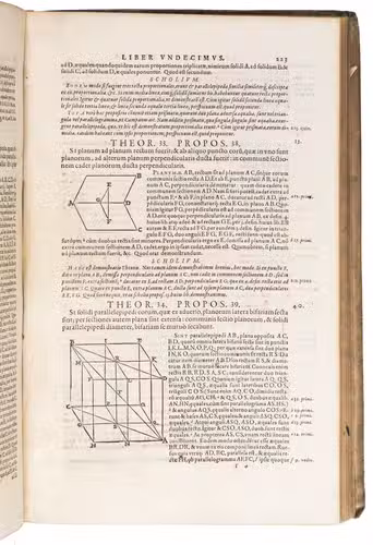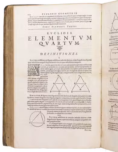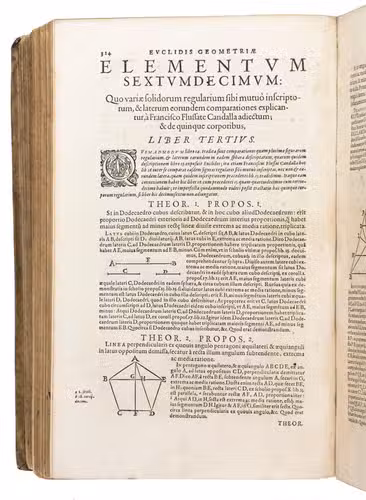 Early Latin edition of the Elementorum, one of the most successful textbooks ever written. The present edition contains the complete enunciations of all fifteen books, and the demonstrations, and has been illustrated with hundreds of geometrical woodcut figures. As the foundational text of both geometry and number theory, the work covers plain geometry, proportions, number theory and solid geometry. The present edition has been edited by Christopher Clavius (1536-1612), or "the Euclid of the 16th century" (DSB).