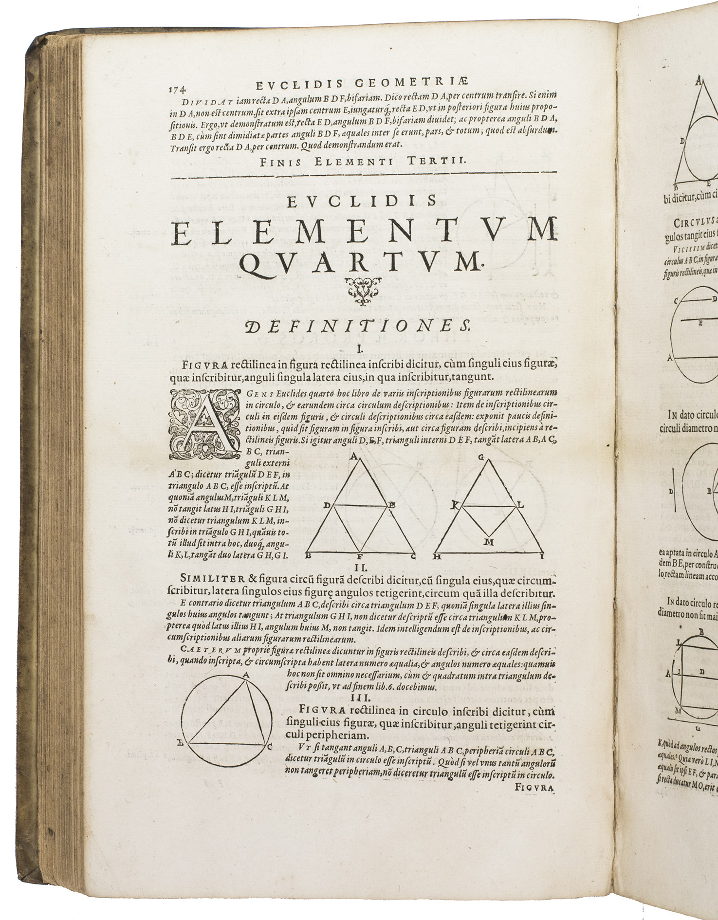 Clavius was a German Jesuit mathematician and astronomer, who was instrumental in the Vatican's adoption of the Gregorian calendar, a pioneer of the use of the decimal point, and, in his lifetime, the most highly respected astronomer in Europe. His edition of the Elementorum is his main work. His version is not a translation, but "contains a vast quantity of notes collected from previous commentators and editors, as well as some good criticisms and elucidations of his own. Among other things, Clavius made a new attempt at proving the "postulate of parallels"."(DSB). His edition first appeared in Rome in 1574, and again in 1589. The present edition is the third. There is some confusion in the literature about the place of printing, as the printer, Giovanni Ciotti (1560-1625), mainly worked in Venice, but the present title page mentions Cologne. According to Thomas-Stanford, the work was most likely printed in Venice, but sold by Ciotti's branch in Cologne.