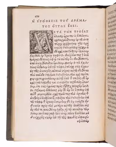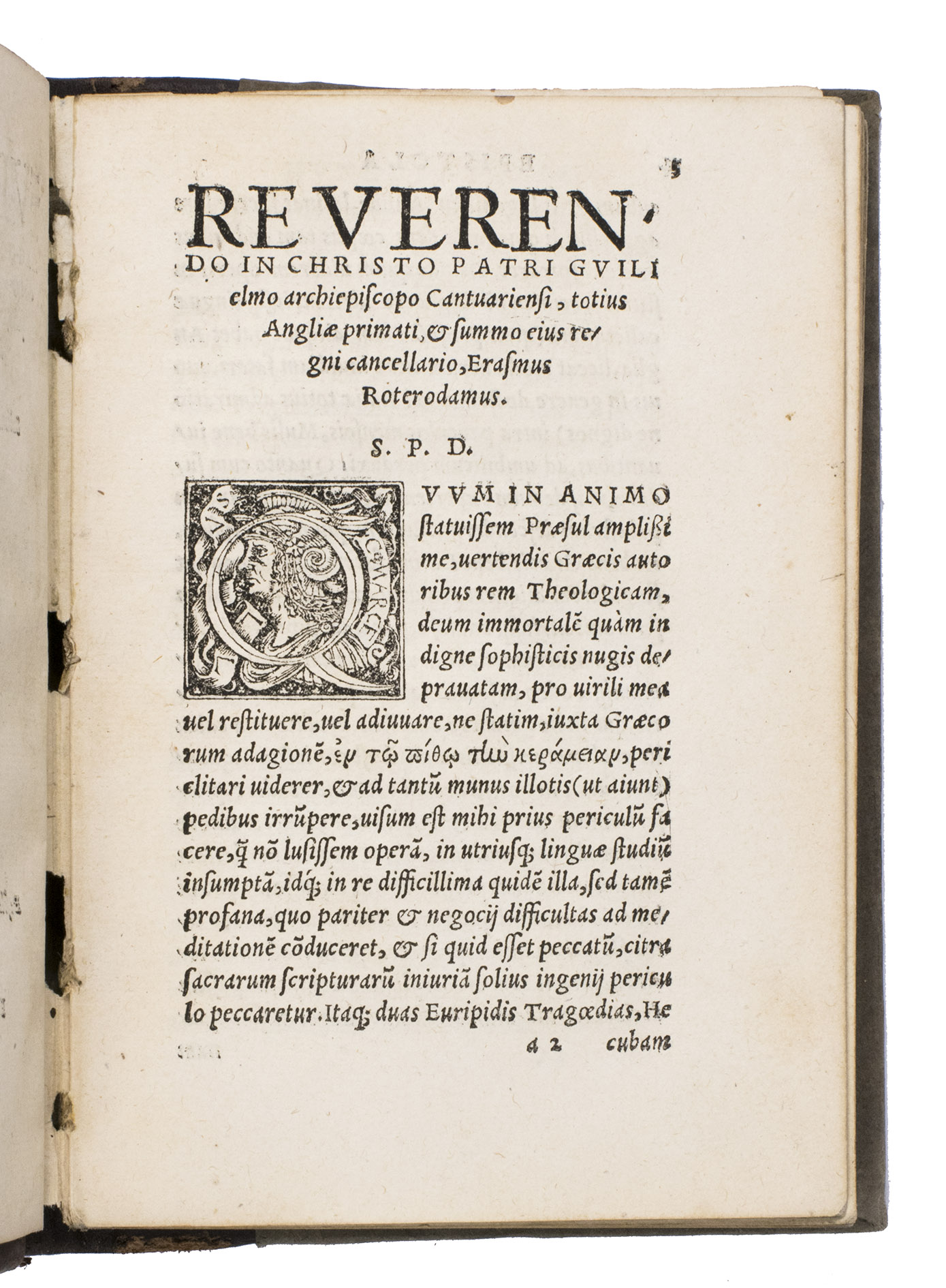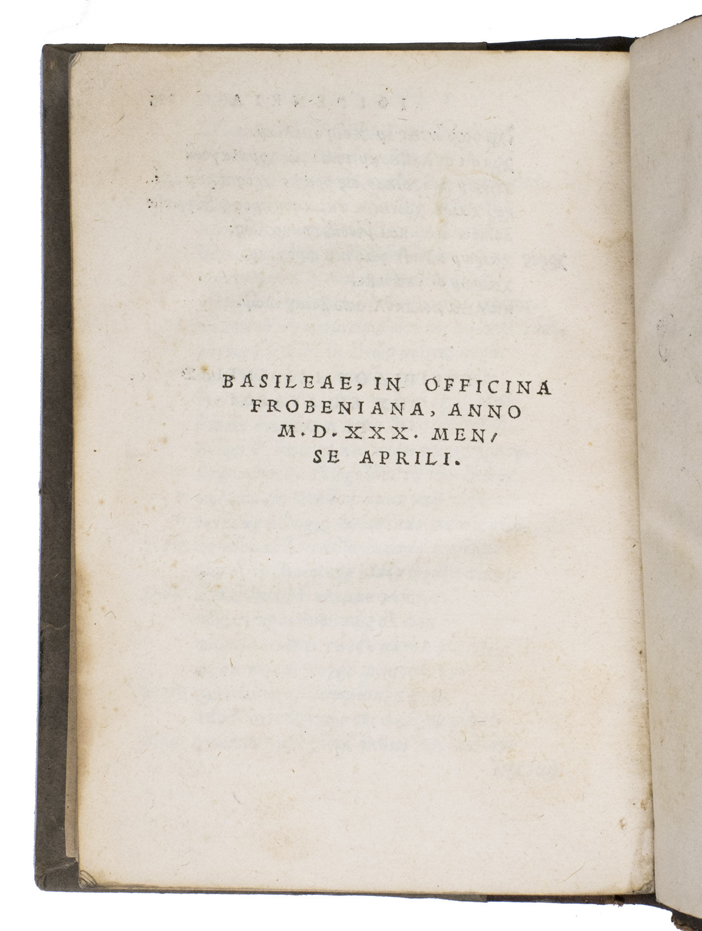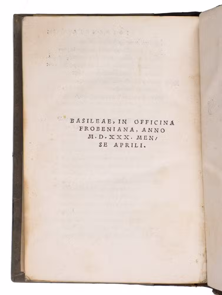 Basel, Froben Office [heirs of Johann Froben], April 1530. 8vo (10.4 x 15.4 cm). With a woodcut printer's device on the title page and final page, and 7 decorated woodcut initials. 19th-century half brown calf and grey paper sides. 293, [1], [1 blank], [1] pp.