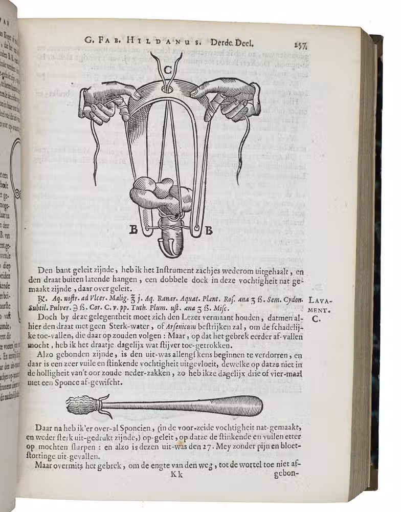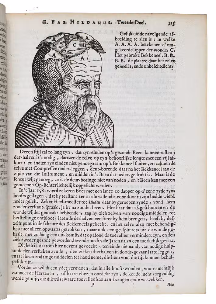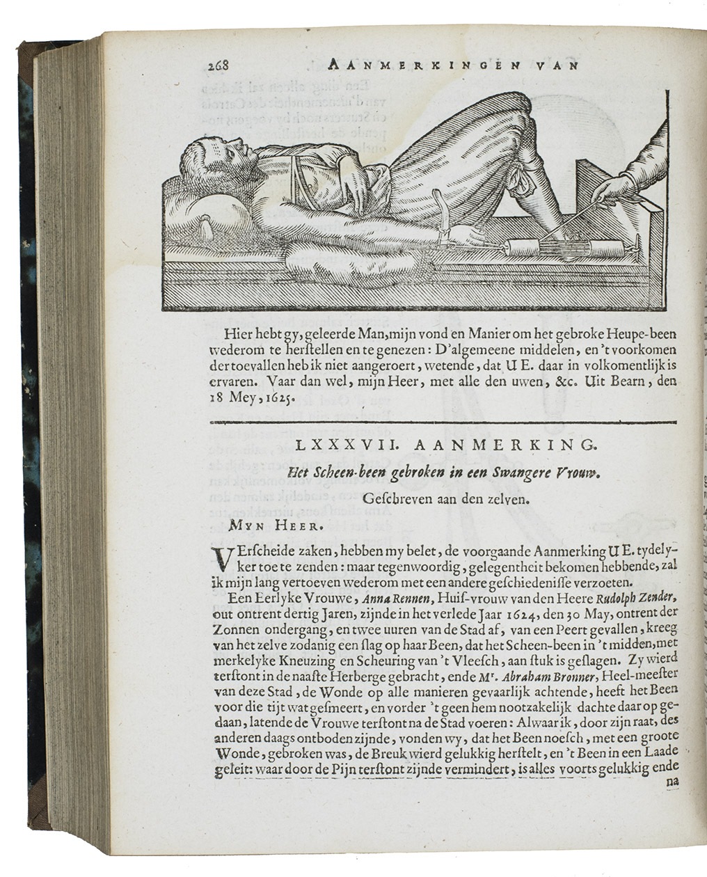 Rare Dutch edition of Wilhelm Fabry von Hilden's famous Centuriae or collections of surgical case reports, enlarged with three additional cases. The collections, 600 in total, were assembled from Fabry's detailed notes of his own cases, and from information supplied by the physicians and surgeons with whom Fabry corresponded.