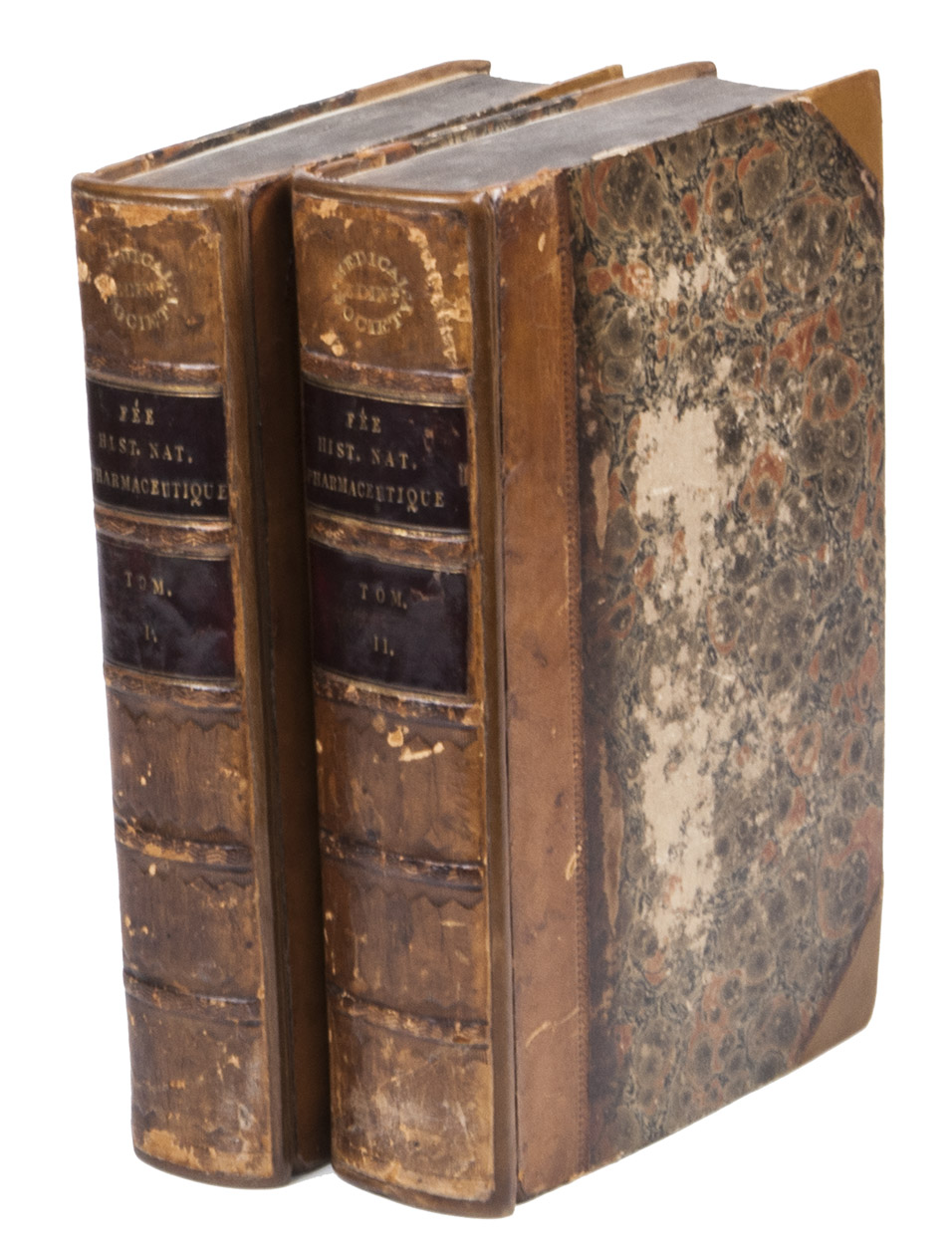 Next to the stamp on the spine also with a library stamp of the Medical Society Edinburgh on the title-pages of both volumes and with the bookplate of Franz Sondheinmer on the front paste-downs. Binding slightly worn around the edges, some small brown stains throughout the book and a little waterstained in the margins (not affecting the text), otherwise in good condition. DSB IV, p. 560; Bulletin des sciences médicales, 7 (1828), p. 267.