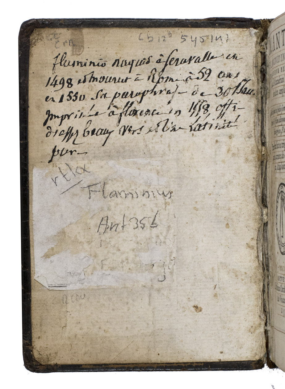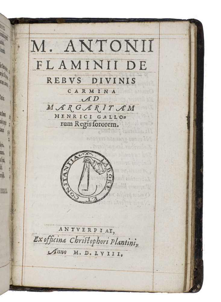 With: (2) FLAMINIUS, Marcus Antonius. M. Antonii Flaminii De Rebus Divinis Carmina ad Margaritam Henrici Gallorum Regis sororem.