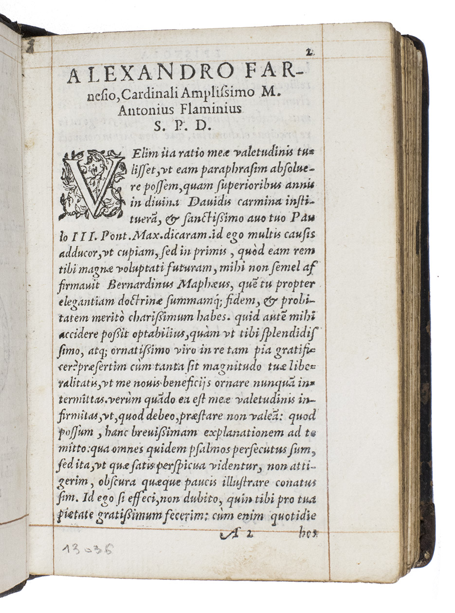 M. Antonii Flaminii in Librum Psalmorum Brevis Explanatio, ad Alexandrum Farnesium Cardinalem amplissimum. Adiectae sunt in studiosorum usum eiusdem authoris in Psalmos aliquot, suo quaeque ordine & loco, Paraphrases. Item adiectae sunt in triginta Psalmos Paraphrases, carmine ab eodem conscriptae, & suo loco positae.