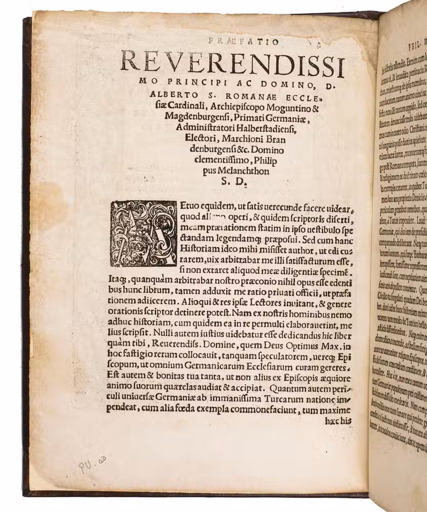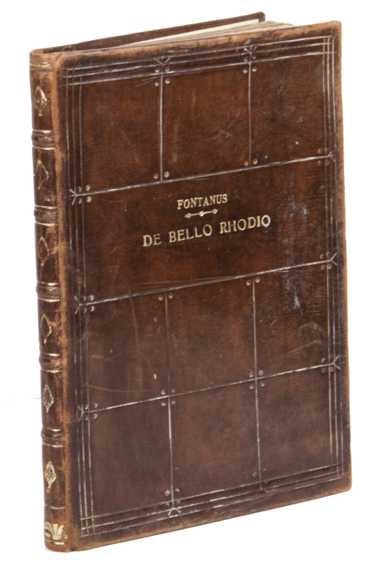 With some small inscriptions in black ink on the title page, the binding is slightly rubbed, some slight water staining in the head margin, the edges of the leaves are sligthly frayed, and some occasional minor foxing and staining. Otherwise in very good condition. Adams F-720; Brunet II 1330/1; Dekkers p. 57; Freeman, "Editions of Fontanus, De bello Rhodio", in: The Library, 5th series, 24 (1969), p. 336-9; Machiels F-182; Panzer VII 98.249; USTC 629057 (33 copies); VD16 F 1843 (16 copies).