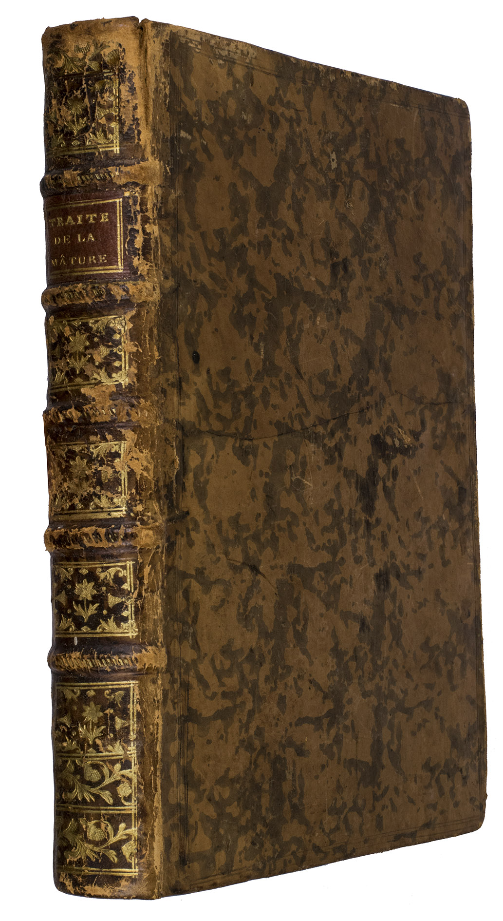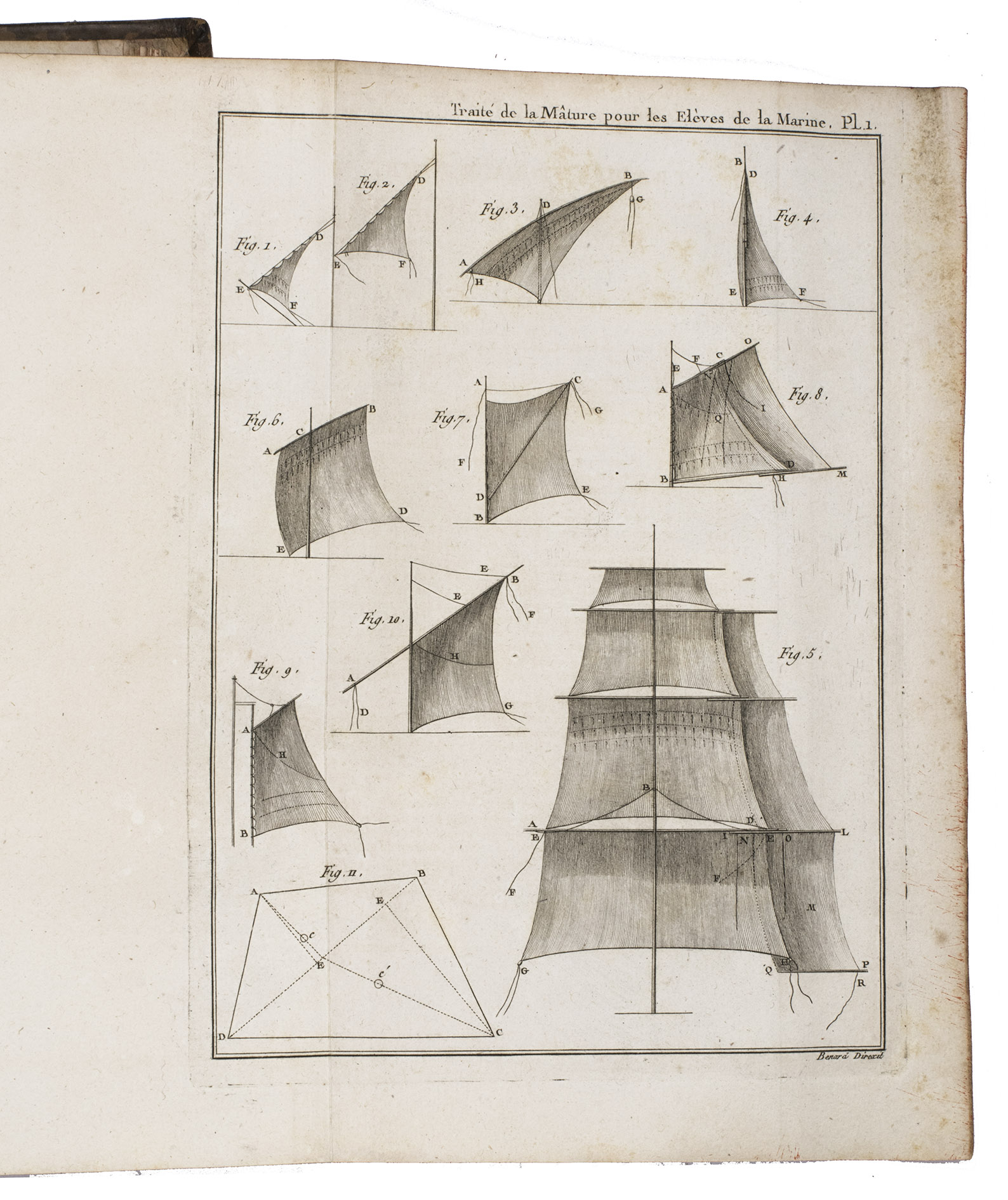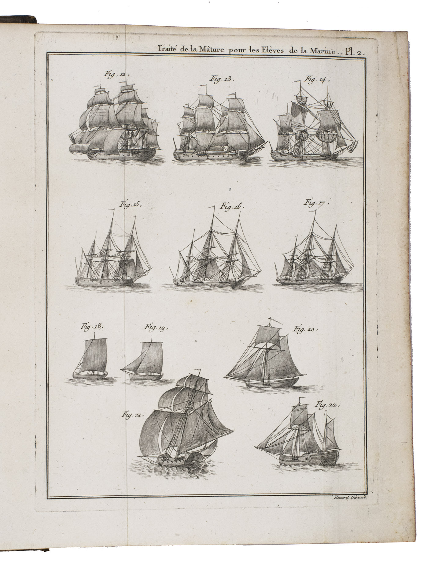 The edges and corners of the boards are somewhat scuffed, the back board is stained. Internally very clean with only occasional foxing. Overall in good condition. Anderson p. 41; Cat. Ned. Hist. Scheepv. Mus. p. 751; Polak 3522; Scott 410; MacDonald 257 ("An important 18th century French treatise on masting and rigging; valuable plates").