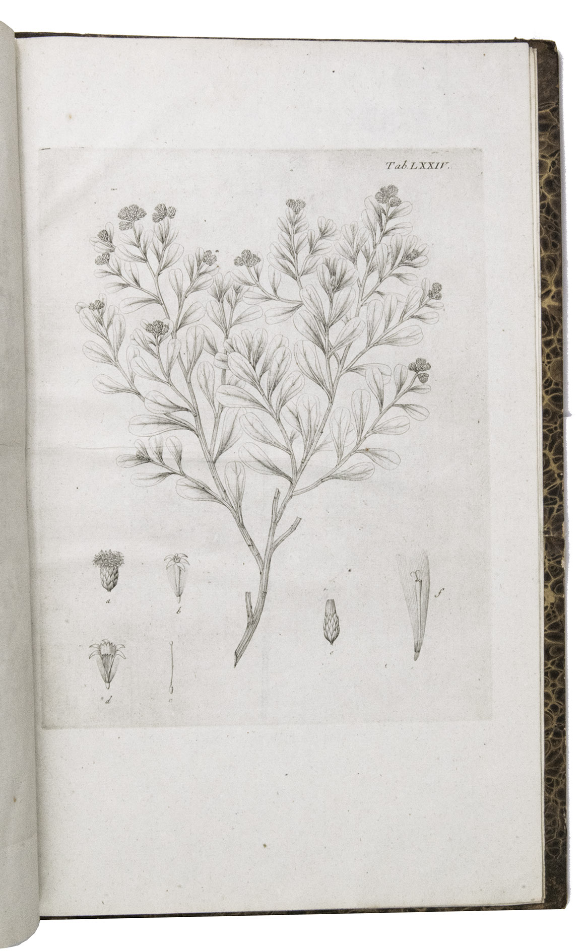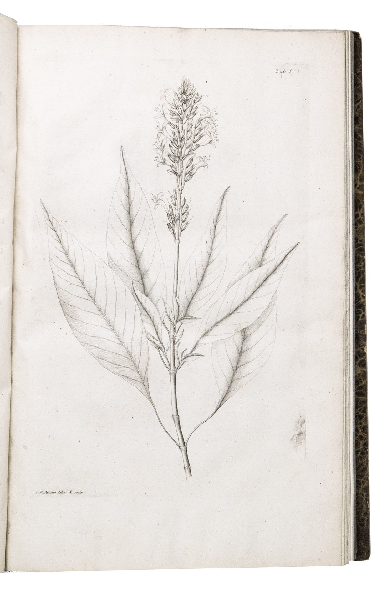First and only edition of a description of the plants collected in Egypt, Syria, and the Arabian Peninsula during the Danish Arabia expedition (1761-1767) by the Swedish naturalist and explorer Peter Forsskål (1732-1763). The present work is among the first that is devoted to this material. It describes a selection of the collection according to Linnaean taxonomy, and has been copiously illustrated with 75 large plates. These are usually all engraved, but one has been beautifully drawn by hand in the present copy.