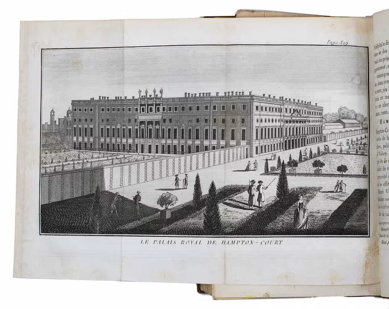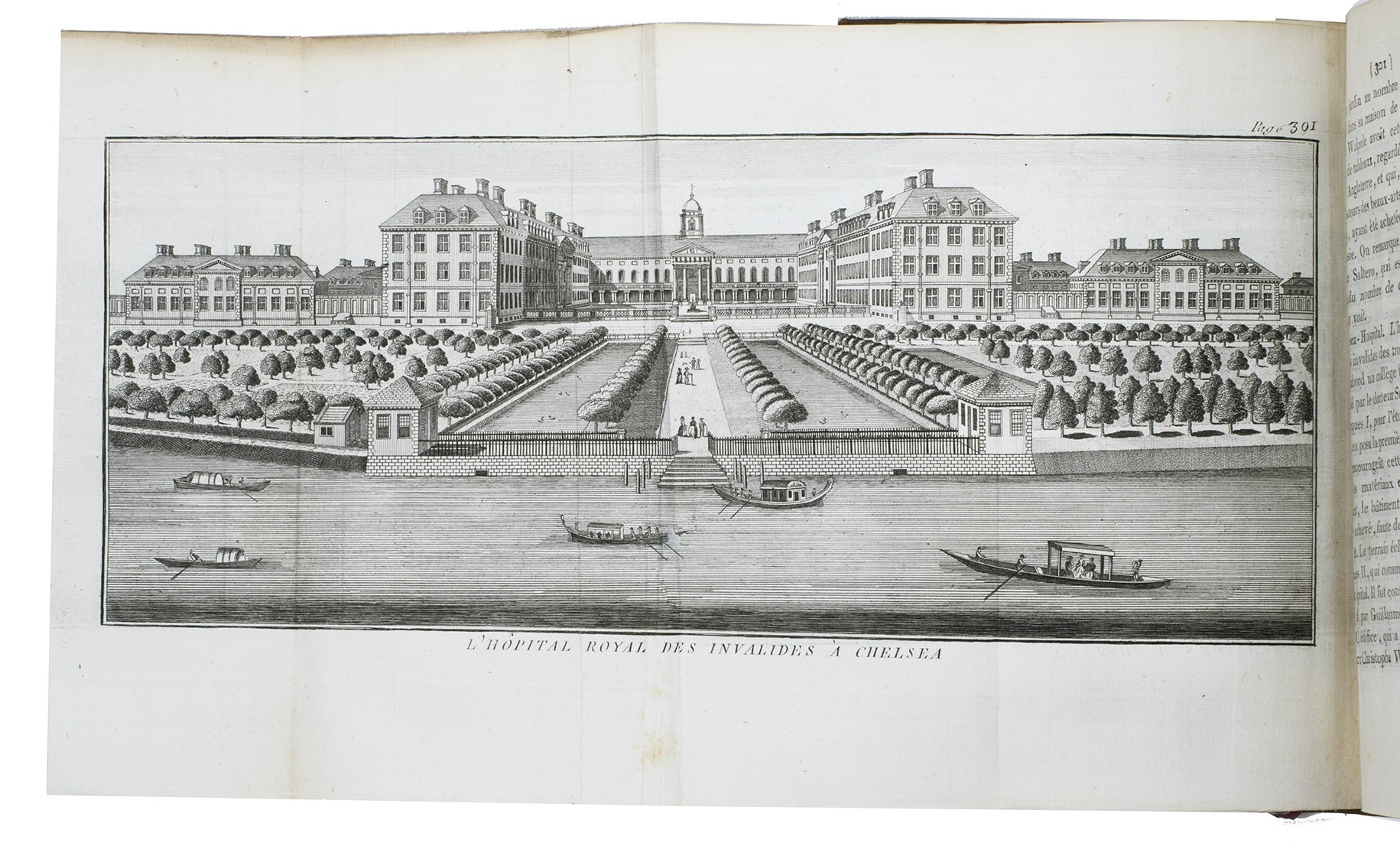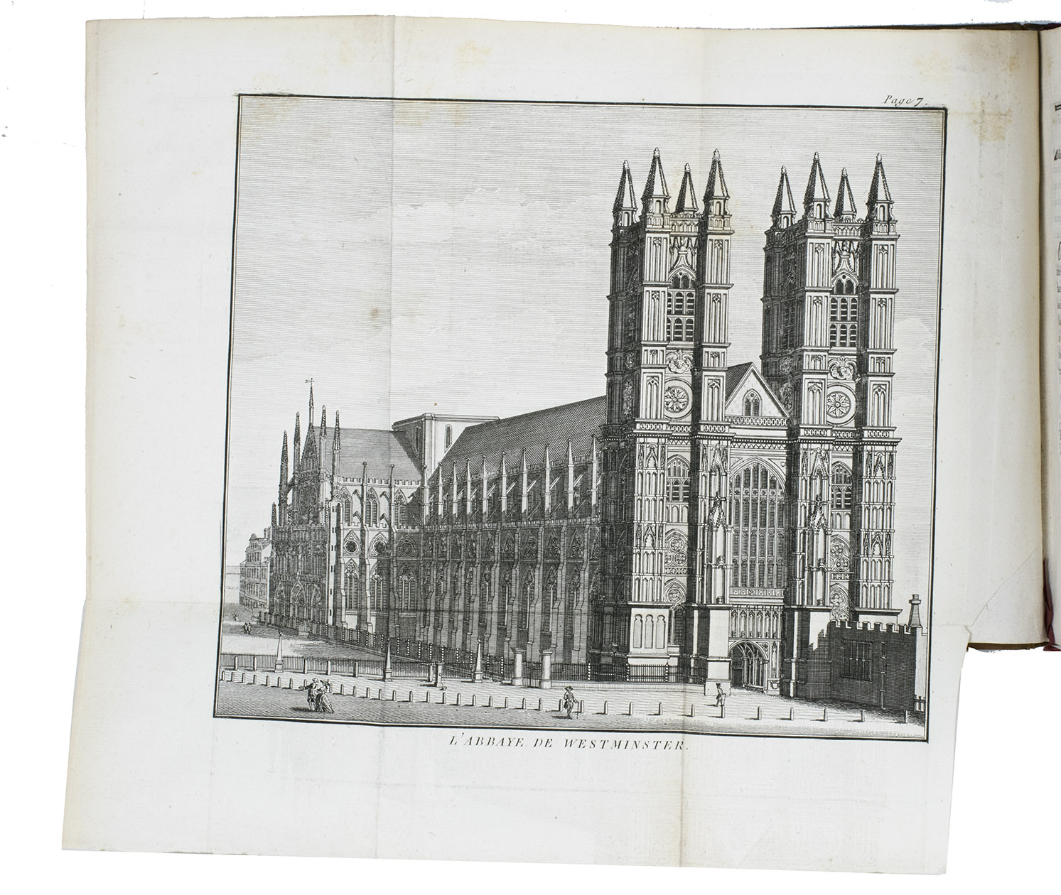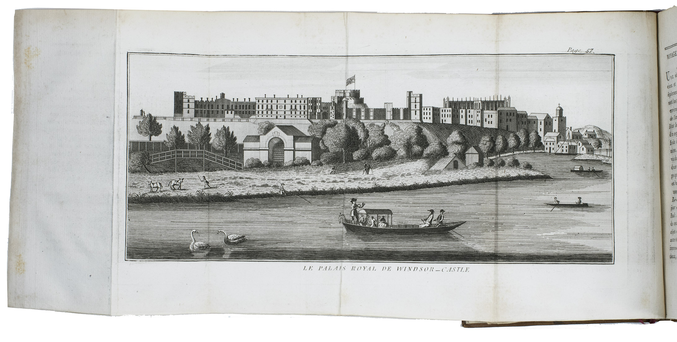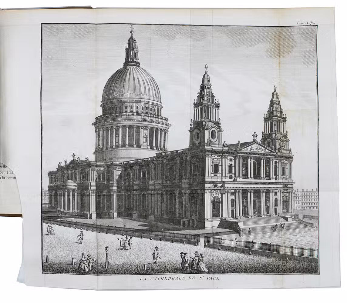 The third volume contains observations on Britain and British culture. The illustrations include a large map of Great Britain and 9 beautiful folding views, showing Westminster Cathedral, Windsor castle, St. Paul's, the House of the Lord Major of London, the London Stock exchange, Covent garden, the Hospital at Chelsea and at Greenwich and Hampton Court.