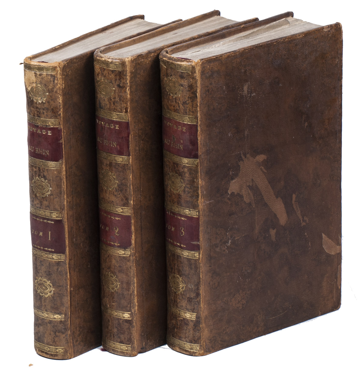 Paris, F. Buisson and Charles Pougens, l'an VIII [= 1800]. 3 volumes. 8vo. With a folding engraved map of Great Britain and 9 folding engraved views of famous English buildings. Contemporary mottled, tanned sheepskin (tree pattern), gold-tooled spines. [4], XVI, 408; [4], 446; 8, 407 pp.