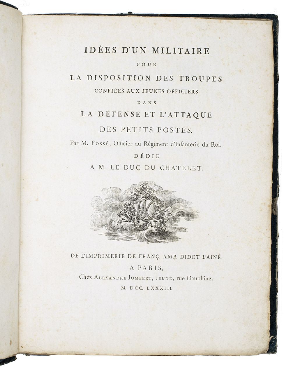 Idées dun militaire pour la disposition des troupes confiées aux jeunes officiers dans la defense et lattaque des petits postes. Dédié à M. Le Duc du Chatelet.