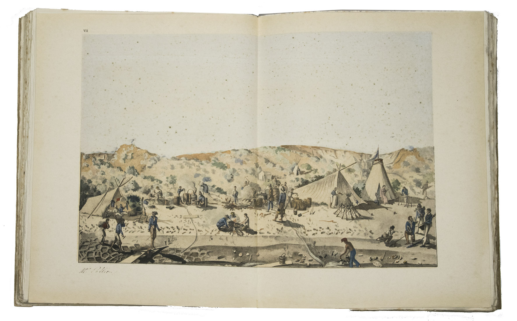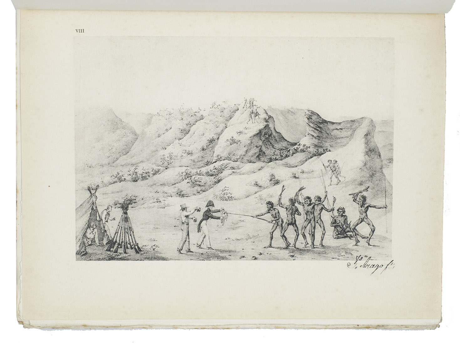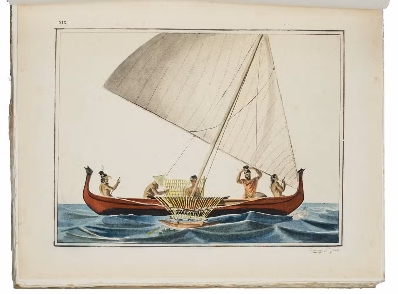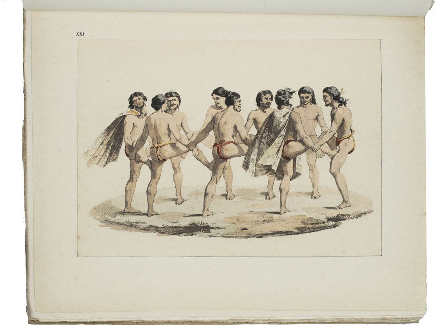 Paris, Société d'Éditions Géographiques, Maritimes et Coloniales (colophon: Chartres, printed by Durand), 1927. Large 4to (28.5 x 23 cm). With 1 map and 25 full-page plates, 13 colour-printed and 3 double-page (plate 7, 24 and 25), all after designs by Jacques Arago, the official artist of the voyage. Original publisher's paper wrappers. [2 blank], XIII, [1 blank], 190, [2] pp.