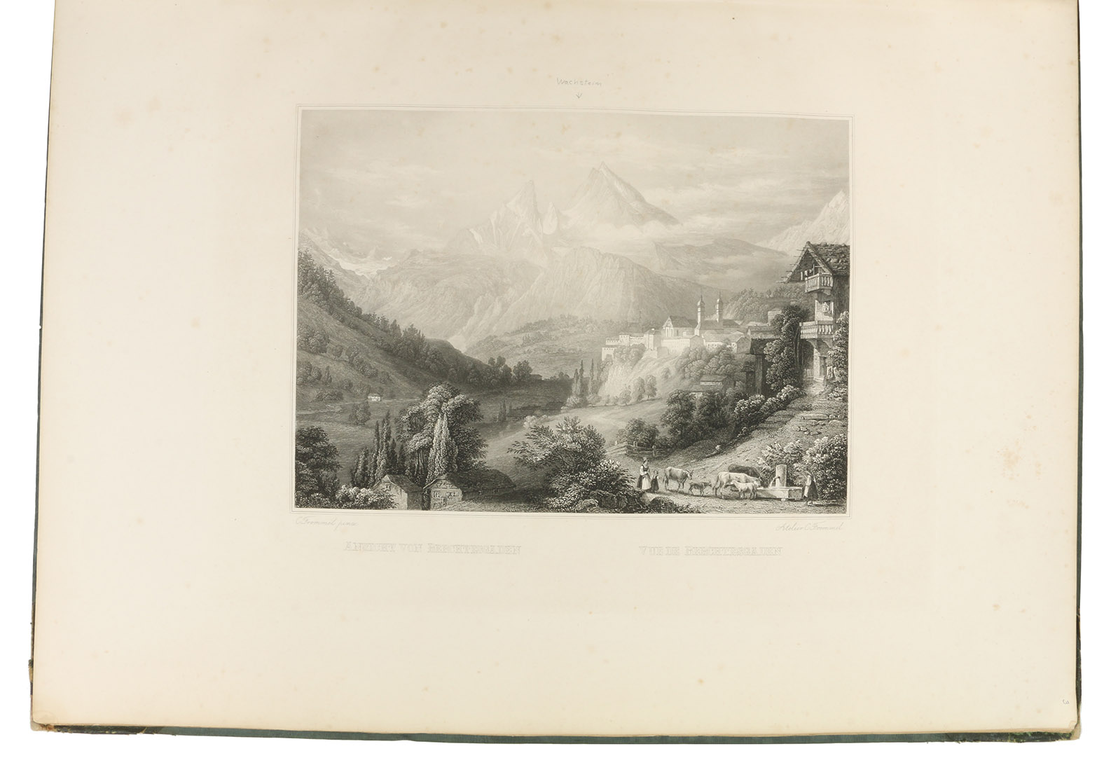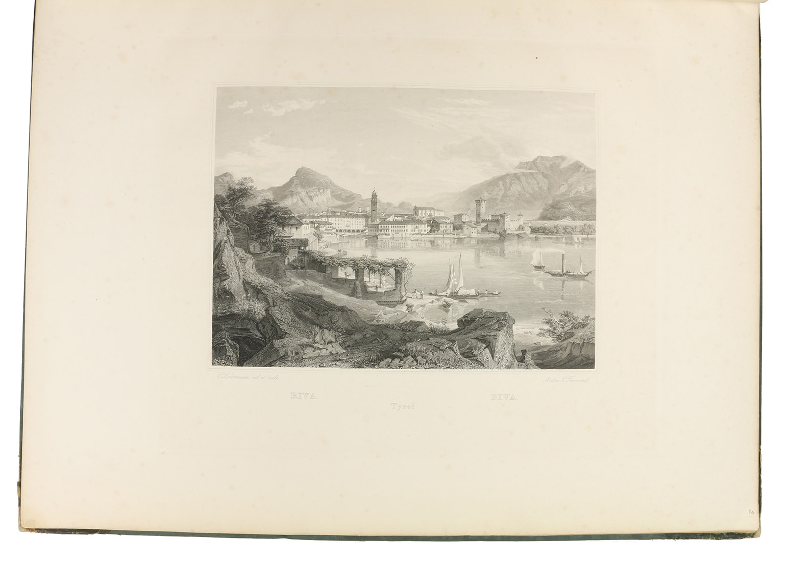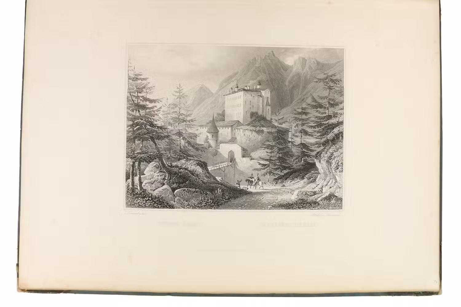 Annual gift (for the past year 1841) for the members of the Kunstverein für das Großherzogtum Baden: a large paper copy of a series of steel-engraved views of Tyrol and vicinity. It includes views of Ambras castle, Berchtesgaden, Bozen, Finstermünz, Hohenschwangau, Innsbruck, Meran, Riva, Salzburg (2), etc. The notes by A. Lewald, bound in here in their entirety, were available only separately, so complete copies with the entire text are very rare.