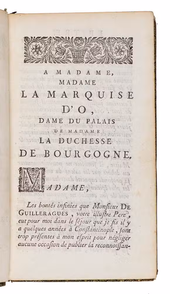 Antoine Galland (1646-1715) came from a family of small farmers, lost his father at the age of four and learned ancient Greek, Latin and Hebrew at the age of ten in Noyon. He later studied in Paris at the Collège Royal and the Sorbonne. His excellent knowledge of Greek persuaded the then French envoy Marquis de Nointel to take him on a five-year mission to the Sublime Porte in Constantinople in 1670, where Galland acquired a knowledge of Turkish, Persian and Arabic.