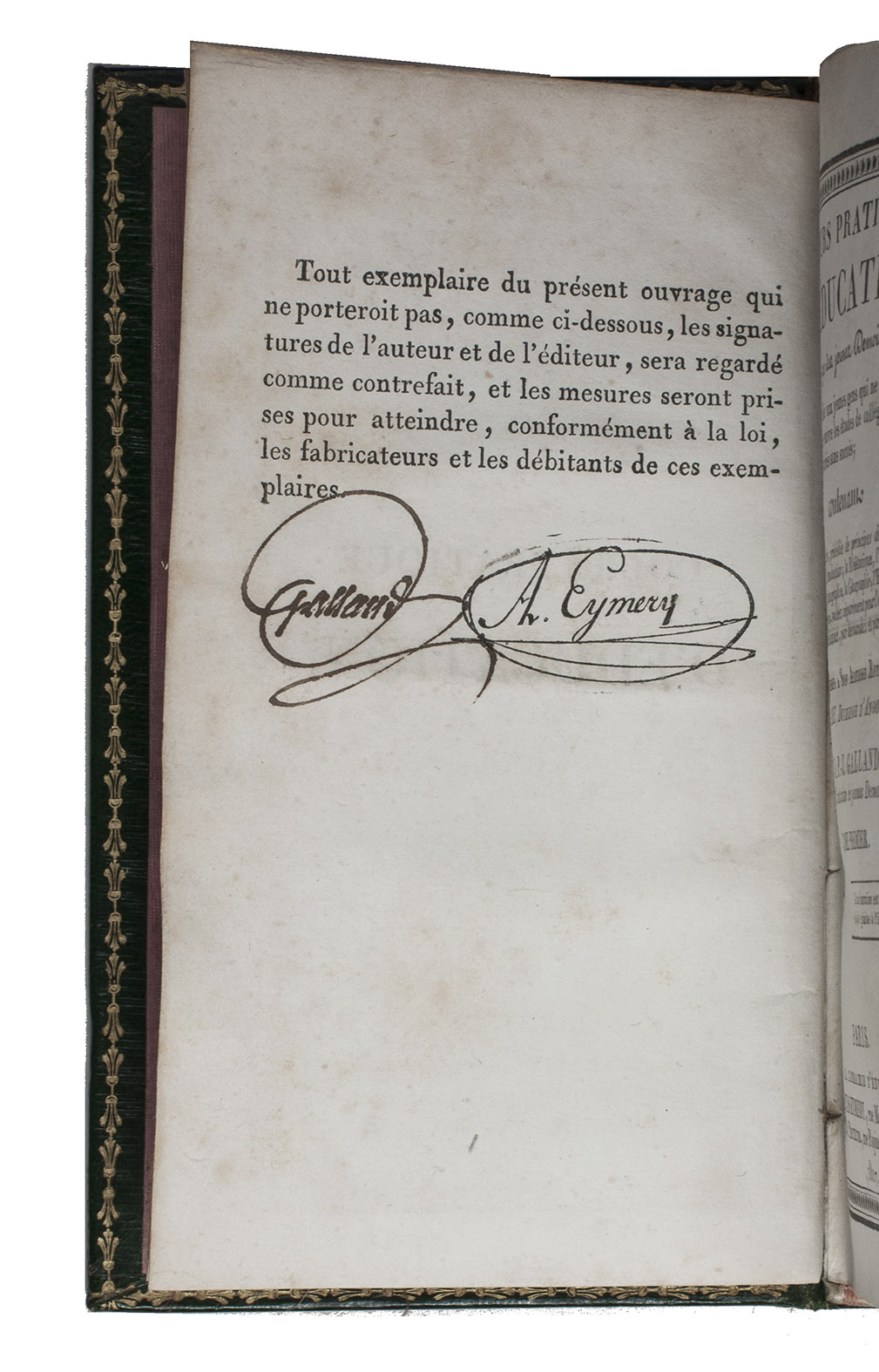 Paris, Librairie d'Éducation d'Alexis Eymerie, and the author (on back of title-page: printed by J.-B. Imbert), 1816 (vol. 3!)-1817 (vols. 1-2). 3 volumes. Large 12mo (17.5 x 10.5 cm). With a large folding engraved map of France, 3 astronomical and cosmographical figures on 3 engraved plates, a large folding hierarchical "tableau synoptique" of French grammar, and numerous numerical tables and mathematical equations in the text. Contemporary richly gold-tooled, grained green morocco, each board with the large arms of the dedicatee, Marie Thérèse de France, Duchesse d'Angoulême, daughter of King Louis XVI: a crowned double coat of arms (each in an oval) in a wide border of fleurs-de-lis and tulip-like flowers, the dexter arms (of her husband) that normally used by the Duc de Berry, but also by the seconde maison Capétienne d'Artois and the sinister arms (of her father Louis XVI) matching that of the Kings of France, pink silk endleaves, gilt edges. [4], 515, [1]; 552, [2]; 492, [2] pp.