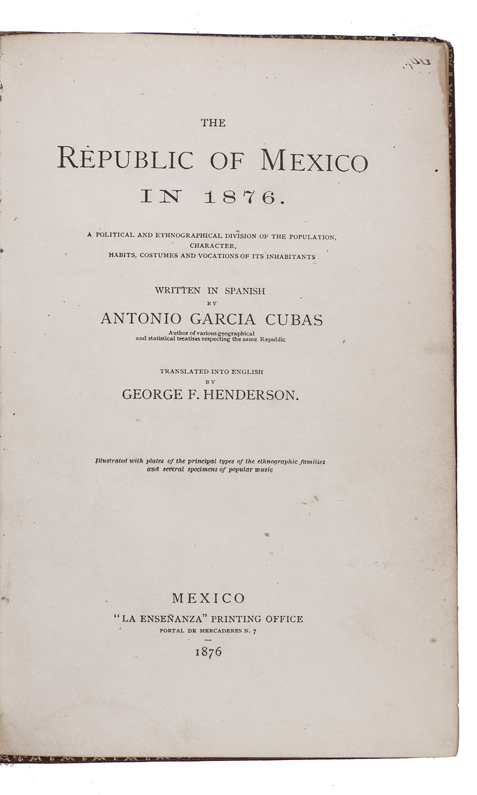 The Rèpublic of Mexico in 1876. A political and ethnographical division of the population, character, habits, costumes and vocations of its inhabitants.