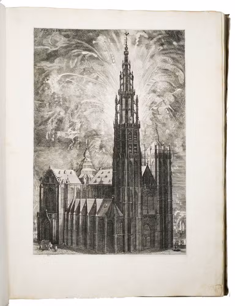 Its large size and numerous copperplate illustrations made it one of the most expensive books produced in the 17th century, but the large plates also allowed Van Thulden to enhance the quality of the illustrations, depicting the arches and stages designed by Rubens for the Baroque festivities in great detail.