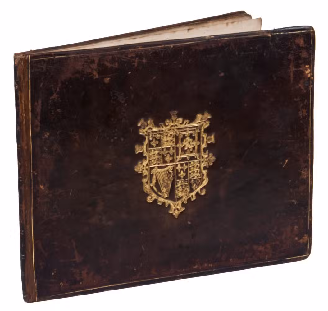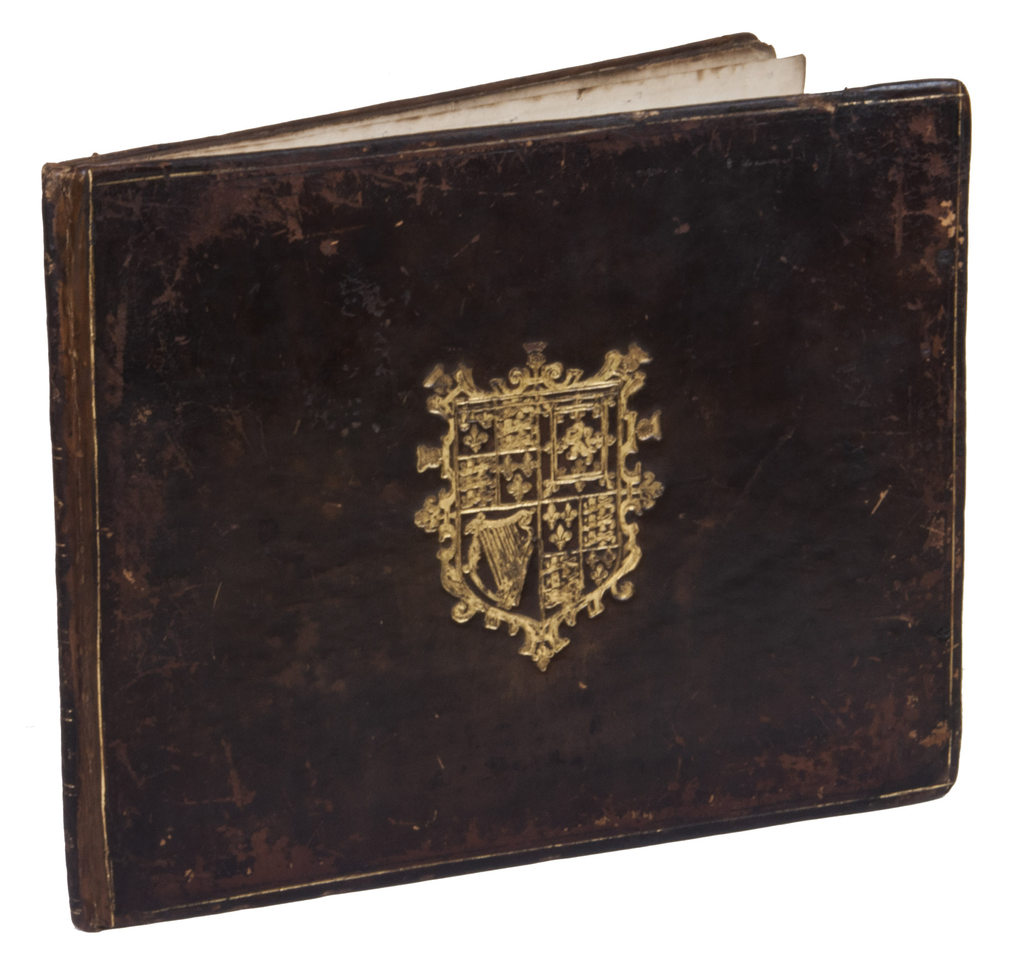 The present work ws apparently bound for Henry Frederick, Prince of Wales (1598-1612), as his coat-of-arms is stamped in gold on both boards. Henry Frederick was the eldest son of King James VI of Scotland (who was also King James I of England) who died before succeeding his father, leaving the throne for his younger brother: King Charles I of England. Henry Frederick's coat-of-arms is that of the kingdom and thus the same as his father since ascending the English throne and even that of his brother King Charles I. However, it is differenced by a label of three points argent at the top of the shield (also visible in the armorial stamp on the present binding), to differentiate between father King James I and the heir apparent Henry Frederick before his premature death. Because of a 19th-century inscription on the front pastedown, we know that a century and a half later, this work was part of the collection of Richard Cosway (1742-1822), one of the most fashionable miniaturists of England and a collector of drawings and prints. This collection was sold at auction by Georg Stanley in London between 14 and 21 February 1822 (The Cosway Collection. Catalogue of the very numberous collection... (London, 1822; lot 113?). In that same inscription, we are told who the next owner of this splendidly bound collection of engravings is, namely a certain Lord Harrington. This, most likely, refers to Charles Stanhope, 4th Earl of Harrington (1780-1851), who was a Gentleman of the Bedchamber to both King George III and King George IV between 1812 and 1820.