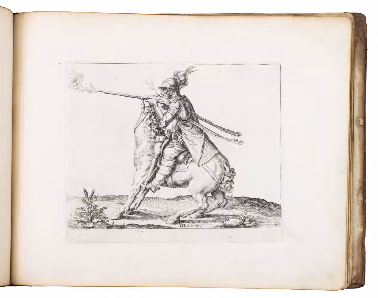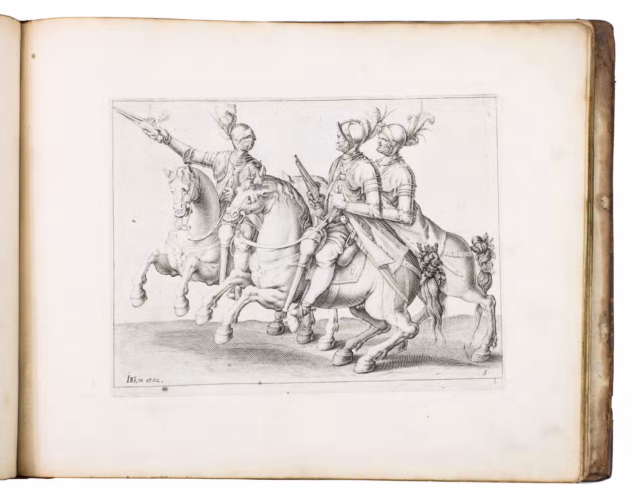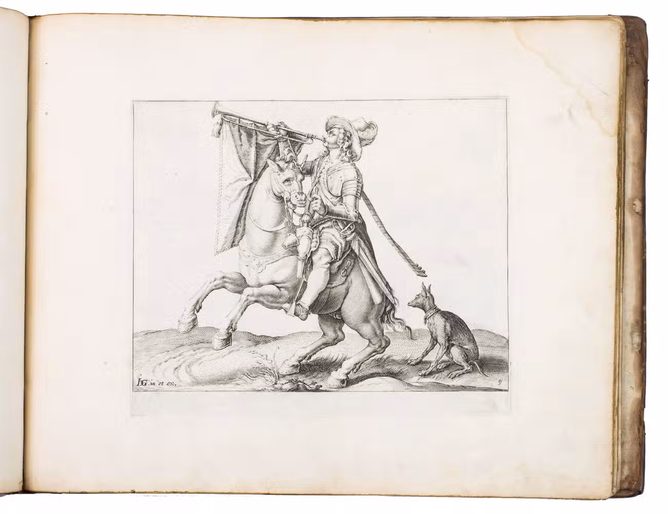 Rare first edition of a magnificent series of armed riders in action, commissioned by Prince Maurice of Orange