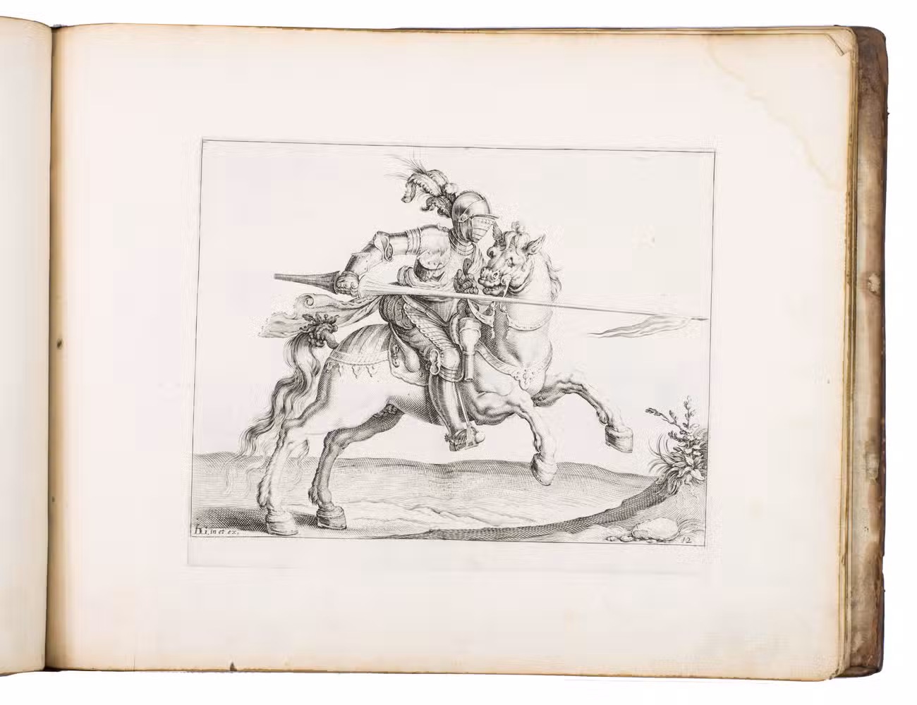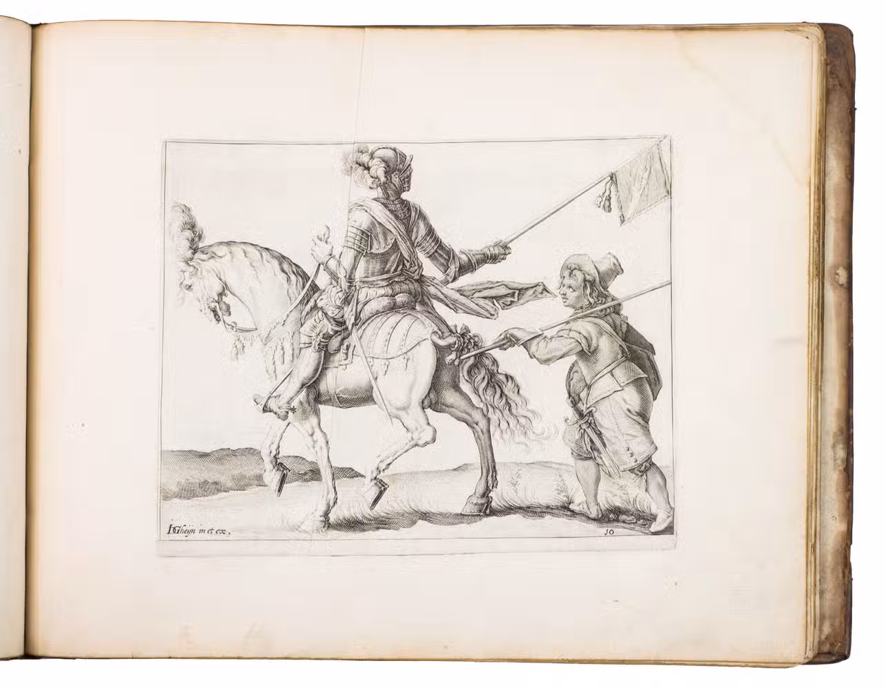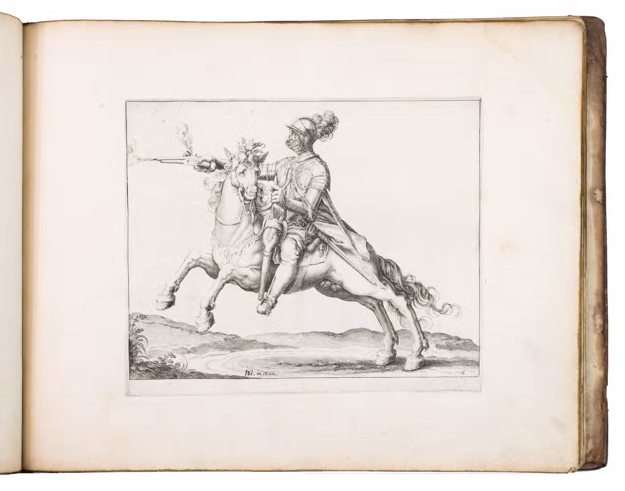 Rare first edition of a magnificent series of armed riders in action, commissioned by Prince Maurice of Orange