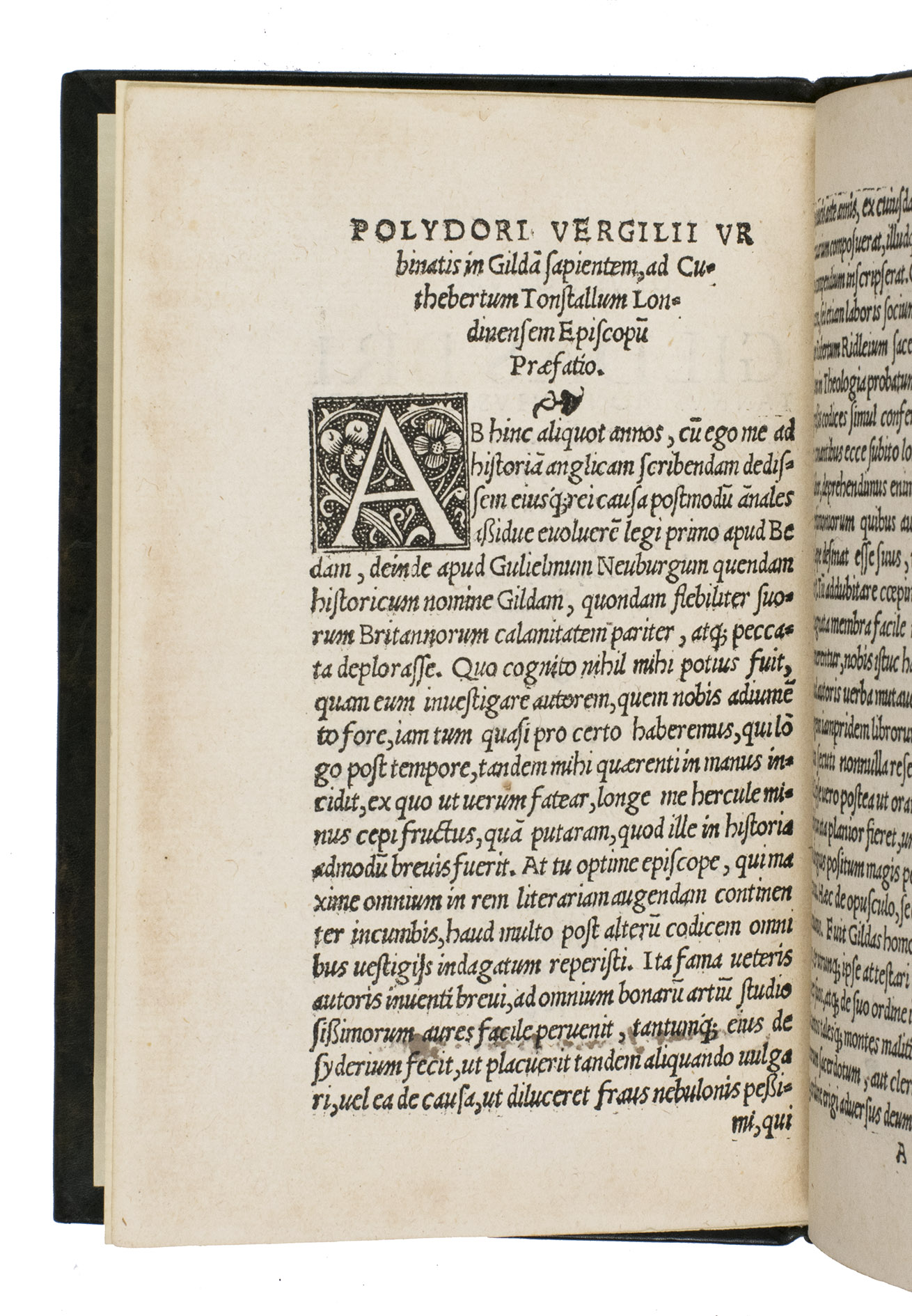 The work circulated in manuscript form for multiple centuries, but first appeared in print in 1525, edited by the Italian humanist Polydore Vergil (ca. 1470-1555). The editor's dedicatory preface to Cuthbert Tunstall, Bishop of London, is dated London, 6 April 1525, from which it has often been erroneously assumed that the book was printed in London as well. However, in his article Dr. Rhodes has identified the real printing place, assigning the book to the most probable printer. Of the three variants of the title page distinguished by Rhodes this is the very scarce variant A with the misprint PRFTER (instead of PRAETER), making it the first issue.