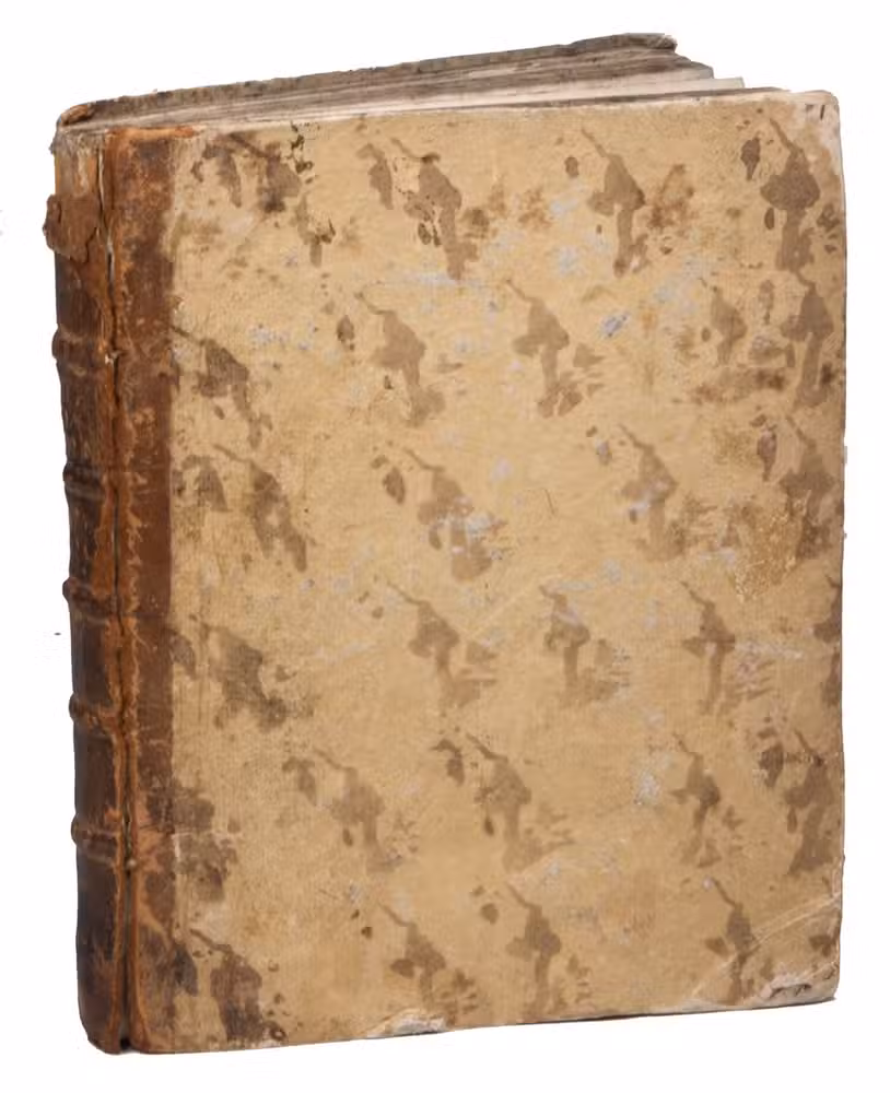 With manuscript inscriptions on the first free endleaf and on the title page. Binding worn, corners bumped, parts of the backstrip loose, some (water-) staining, slightly dust-soiled, with some small tears, mainly in the foot margin (some repaired) and a wormhole in the foot and one in the fore-edge margin. Otherwise in good condition. A rare astronomical work. BM STC French, p. 203; Brunet II, col. 1614 (note); Graesse III, p. 89; Houzeau & Lancaster 4962; Pettegree, French vernacular books 23076 & 23077 (2 identical descriptions!); USTC 37546; not in Adams; Mortimer, French.