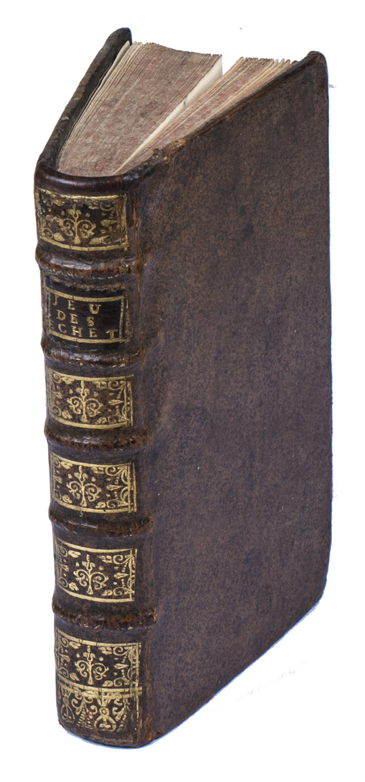 Paris, Denis Mouchet, 1714. 12mo. With a woodcut decoration on title-page and a woodcut headpiece in text. Contemporary mottled calf, richly gold-tooled spine. [22], 343, [1 blank] pp.