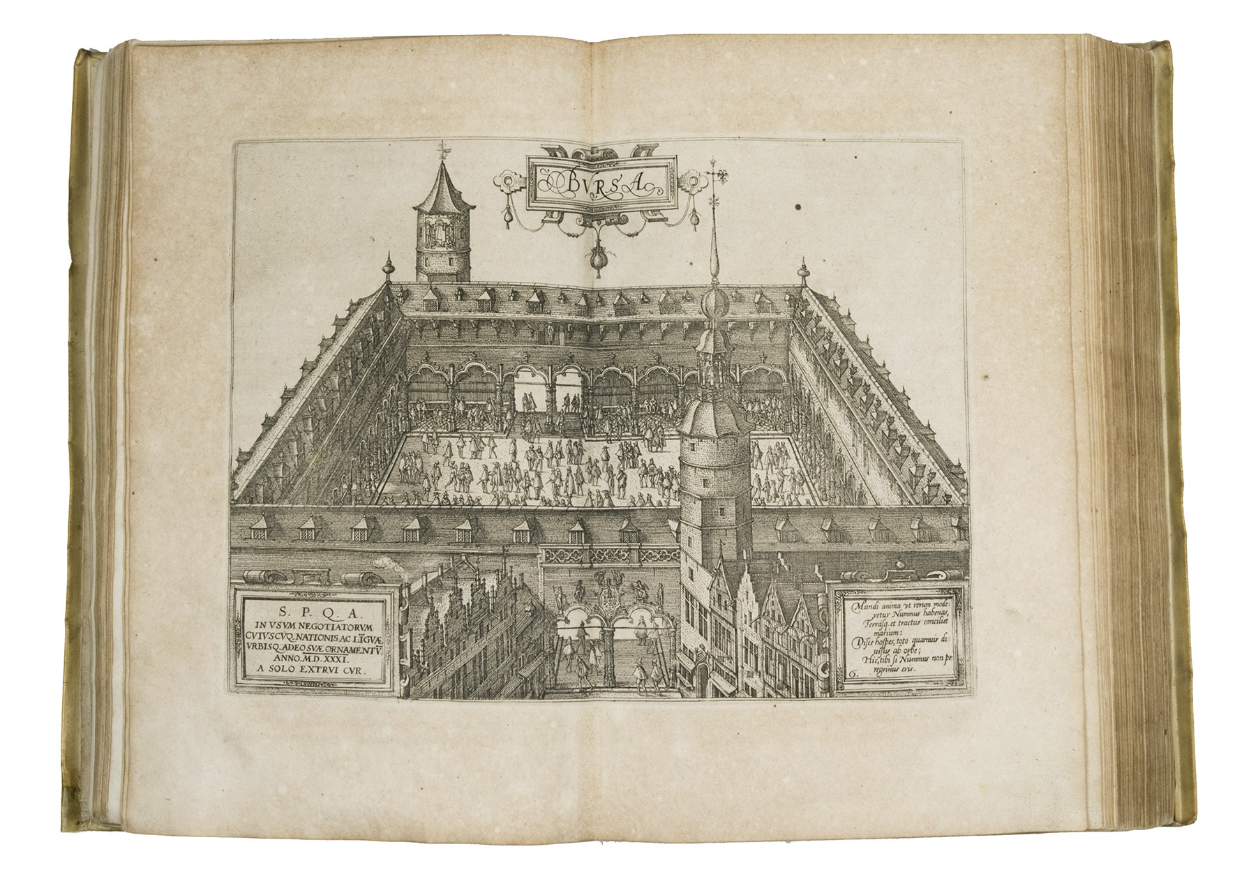 This 1588 edition is the last and at the same time the most beautiful edition published in the Southern Netherlands. In this edition Guicciardini shows us the gradual change concerning the (political) situation of the Low Countries as a result of the enduring resistance against the king of Spain. This current edition is a reprint of Plantin's Italian edition of 1581, but with the addition in the introductory part of Justus Lipsius' Latin poem, as it was printed in the French edition of 1582. Guicciardini's dedicatory to Philip II dated October 20, 1566 is also reproduced, but a new note by the author to the reader dated November 20, 1587 replaces the older one dated 1566. For this edition, Plantin used the improved and numbered copperplates of the French edition of 1582. The portrait of Philip II however is almost identical of those from the 1581 and 1582 editions, but is printed from a new copperplate (this portrait bears a.o. the small flower consisting of 8 instead of 7 balls at the upper side of the caption and to HISPANIARVM is added the second I). In the coat of arms of Philip, the coat of arms of Portugal is now added. Also, the copperplate of the plan of Antwerp is adjusted because of the demolition activities on the citadel and the year MDLXXI was changed into MDLXXXVII.