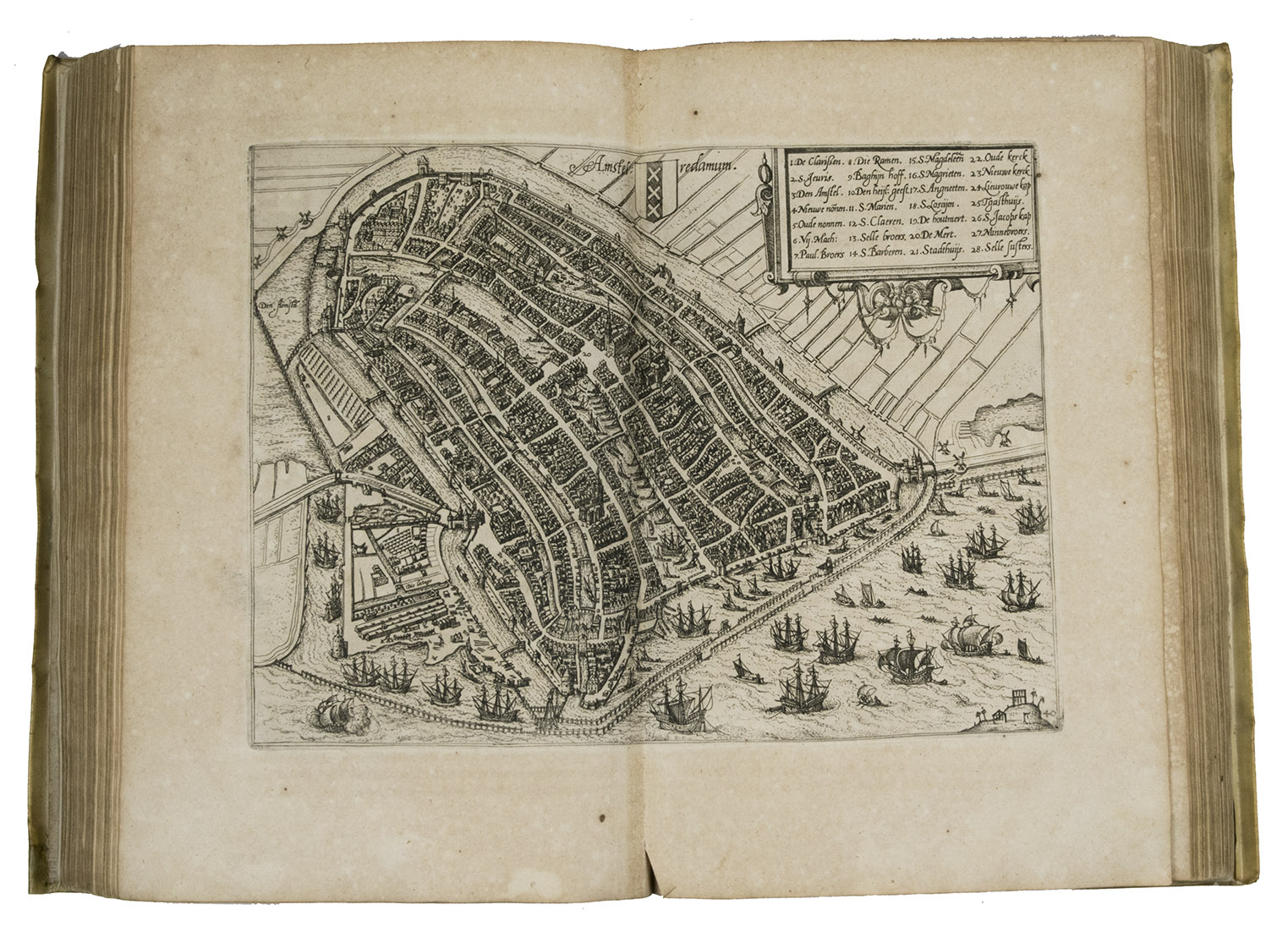 Third Italian edition of the first illustrated description of the Low Countries. This popular guide to the Netherlands was written by the nobleman Ludovico Guicciardini (1521-1589), an Antwerp-based merchant from Florence, Italy. Most of the cities shown in the plans and views had never before been depicted in print before. Not only was Guicciardini's work a great success, going through dozens of editions in a wide variety of languages, but its maps, plans and views were also copied for decades, both for use in other works and for separate publication.