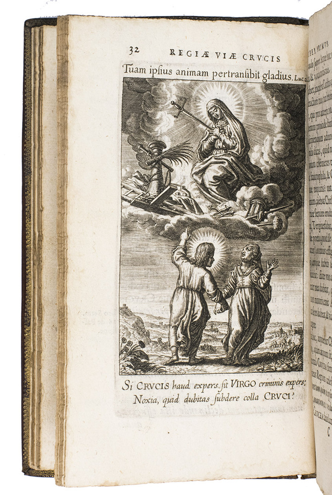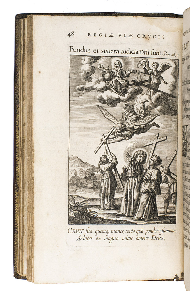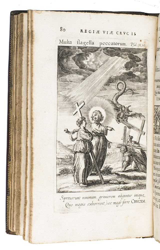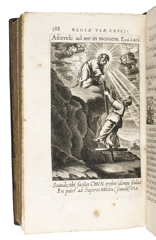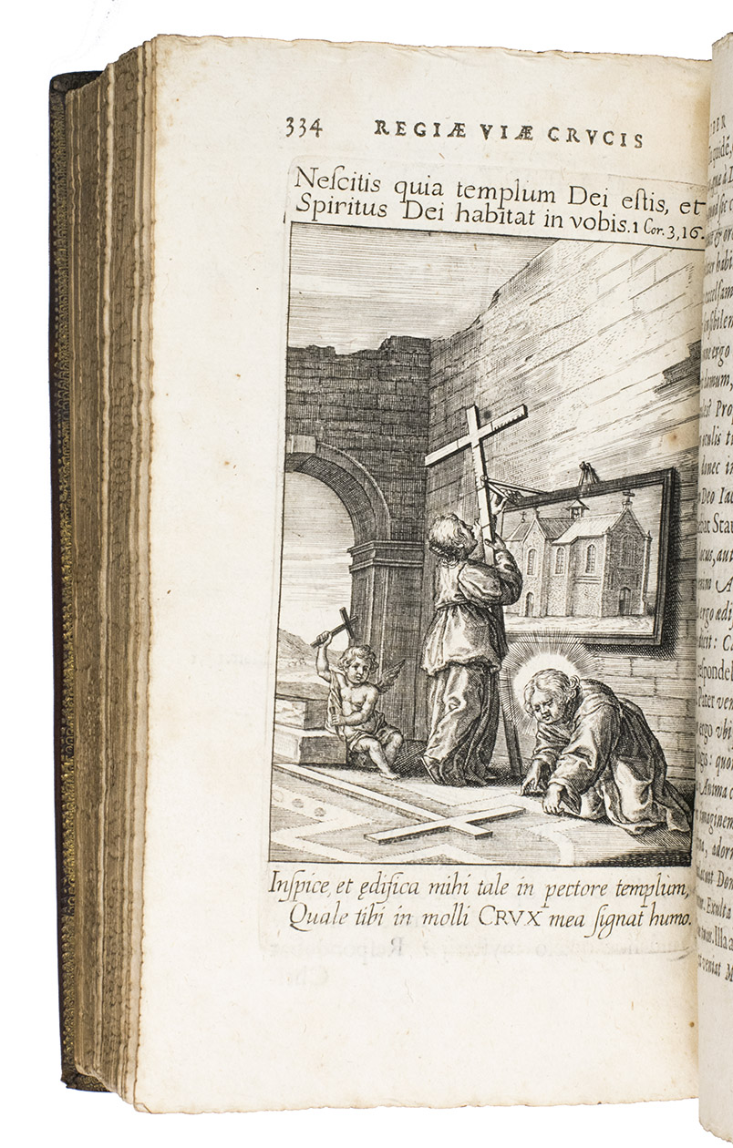 First edition (first issue), the only edition in the original Latin, of a lovely devotional emblem book with an engraved title page and 38 engraved emblems, all on the theme of the holy cross, all engraved by Cornelis Galle the elder (1576-1650), at least the title page after a drawing by Peter Paul Rubens (1577-1648).