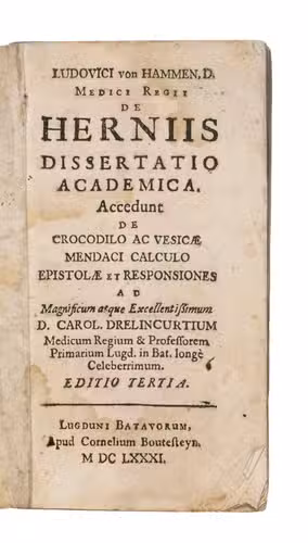 De herniis dissertatio academica. Accedunt de crocodilo ac vesicae, mendaci calculo, epistolae et responsiones.