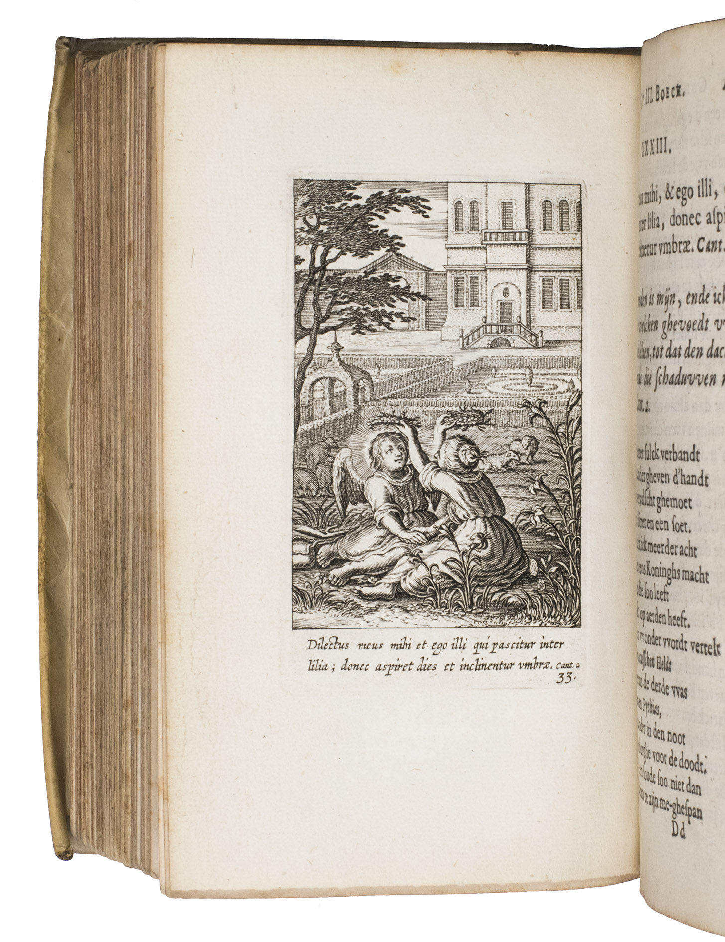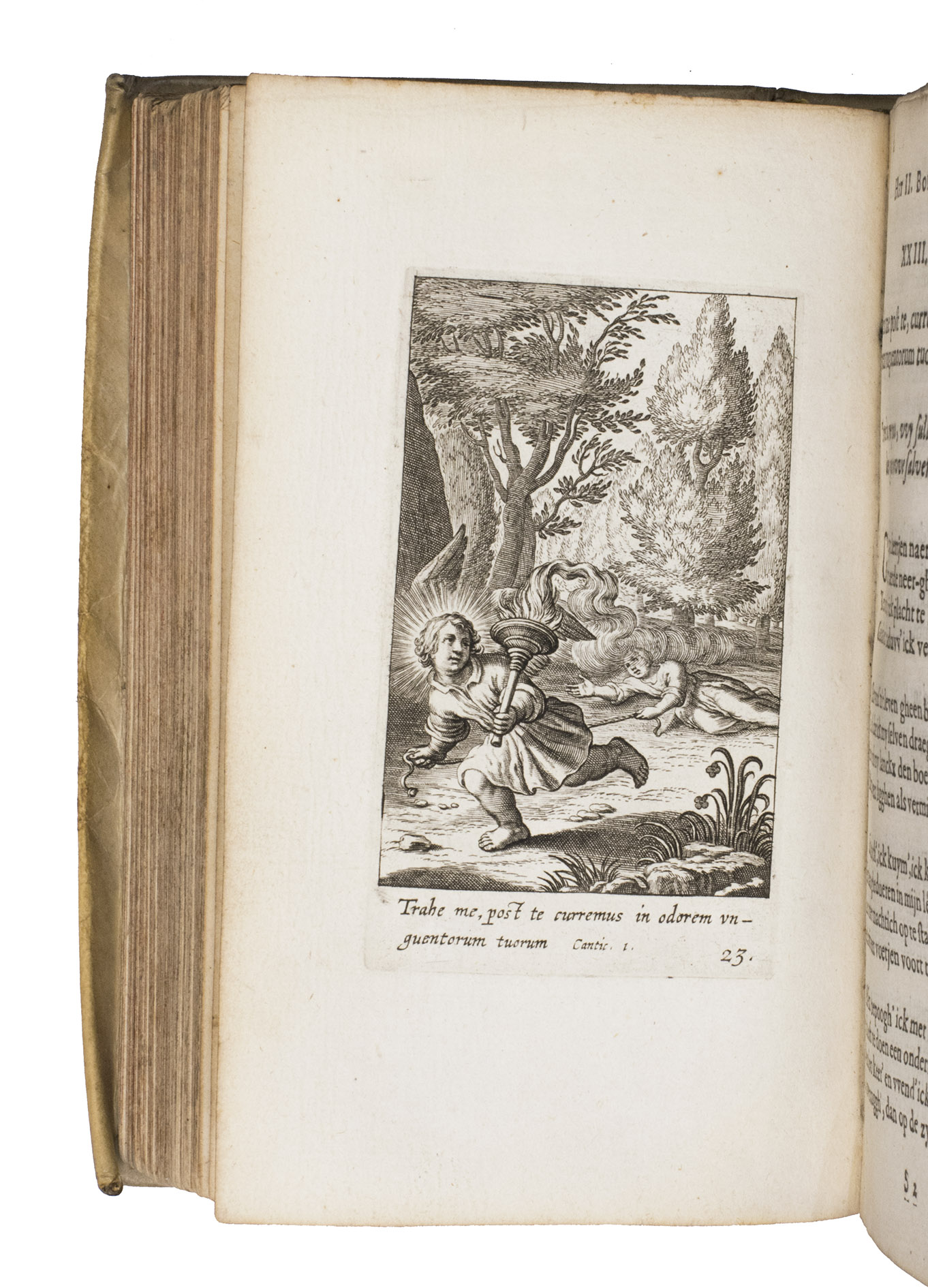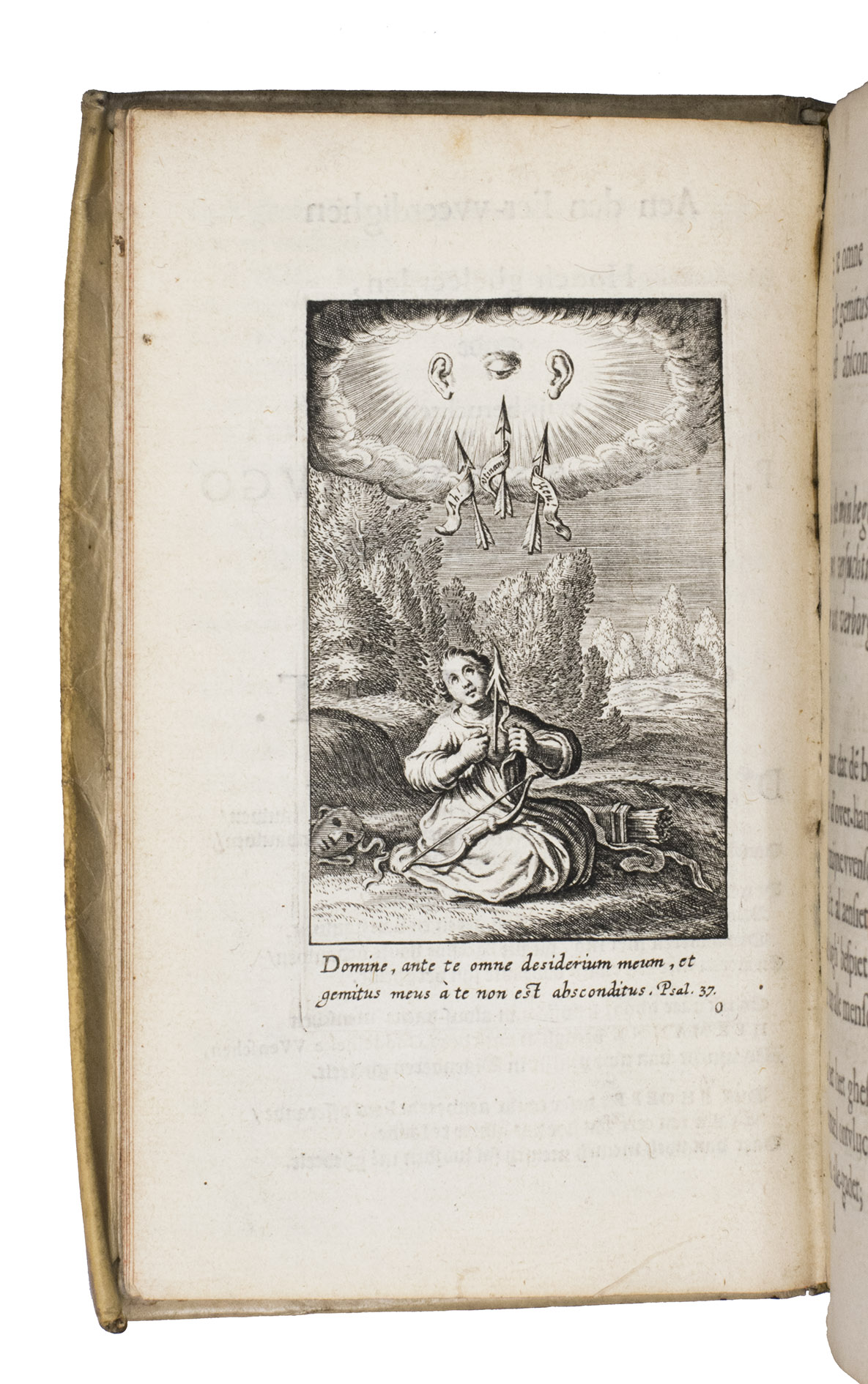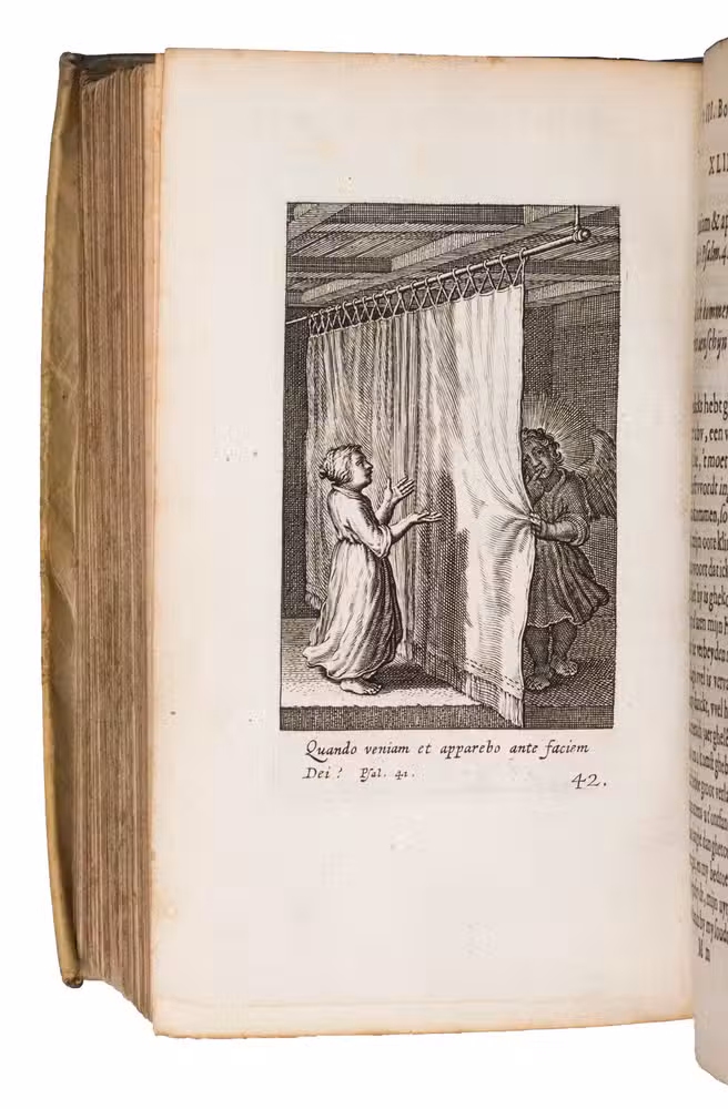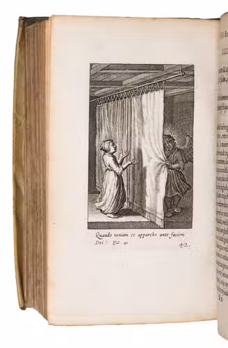 With the ownerships entry of Susanna Verbrugghen, dated 1703, in the printer's device on the final page. The vellum is slightly soiled. Internally very clean, with only some browning on the final few leaves and an occasional stain. Otherwise in very good condition. Landwehr, Emblem & Fable books, 357; Nijhoff, Cat. 677 (1946), no. 670 ("very fine copy"; price f. 75!); STCV 3136615; De Vries, no. 129; USTC 1002001; cf. O. Dambre, Justus de Harduyn. Een biografische en letterkundige studie (1926); id., Nabeschouwingen over Pia Desideria en Godeelycke wenschen, in: Spiegel der Letteren, 2 (1958), pp. 59-65; Insolera, La spiritualité en images aux Pays-Bas Méridionaux dans les livres des 16e et 17e s. (1996), pp. 170-176; A. Raspa, Arwaker, Hugos Pia Desideria and Protestant Poetics, in: Renaissance and Reformation, 24/2 (2000), pp. 63-74.
